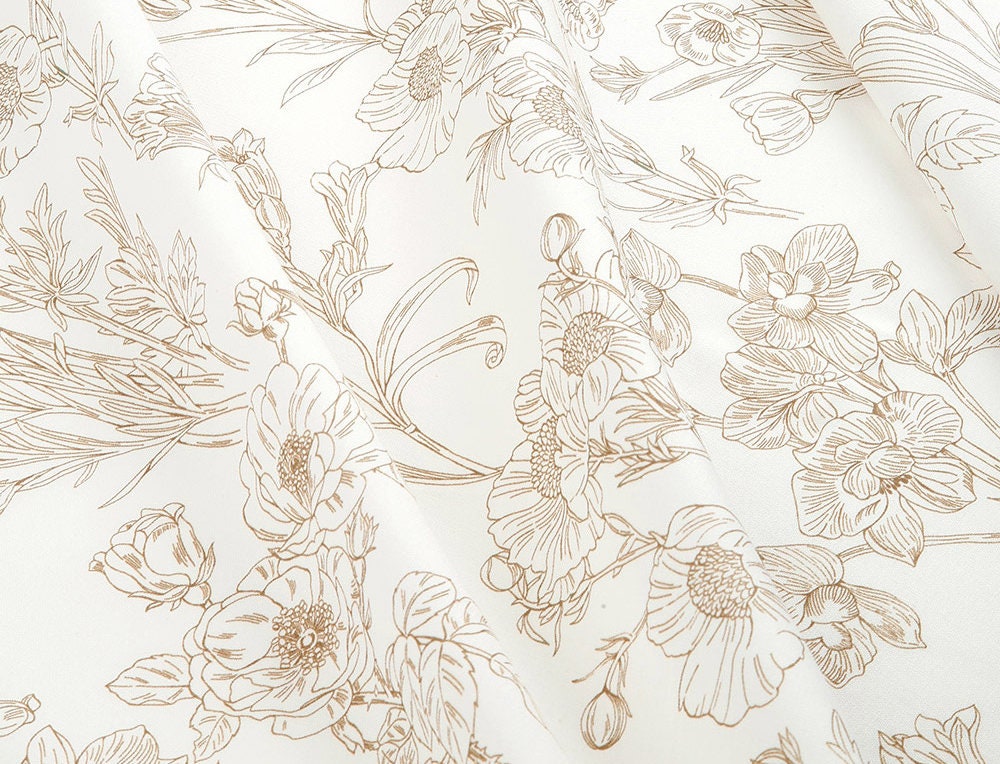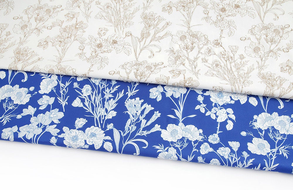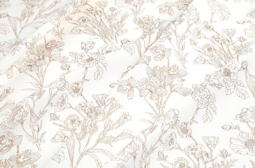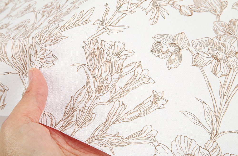 Sketch Floral Drawing Flower Patterned Fabric - Korean Fabric