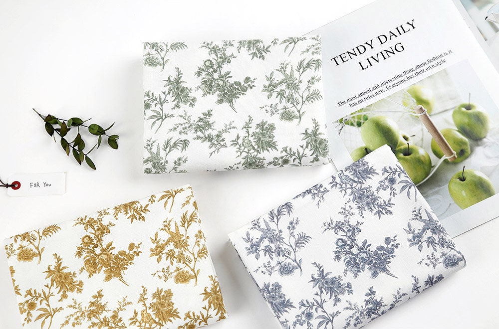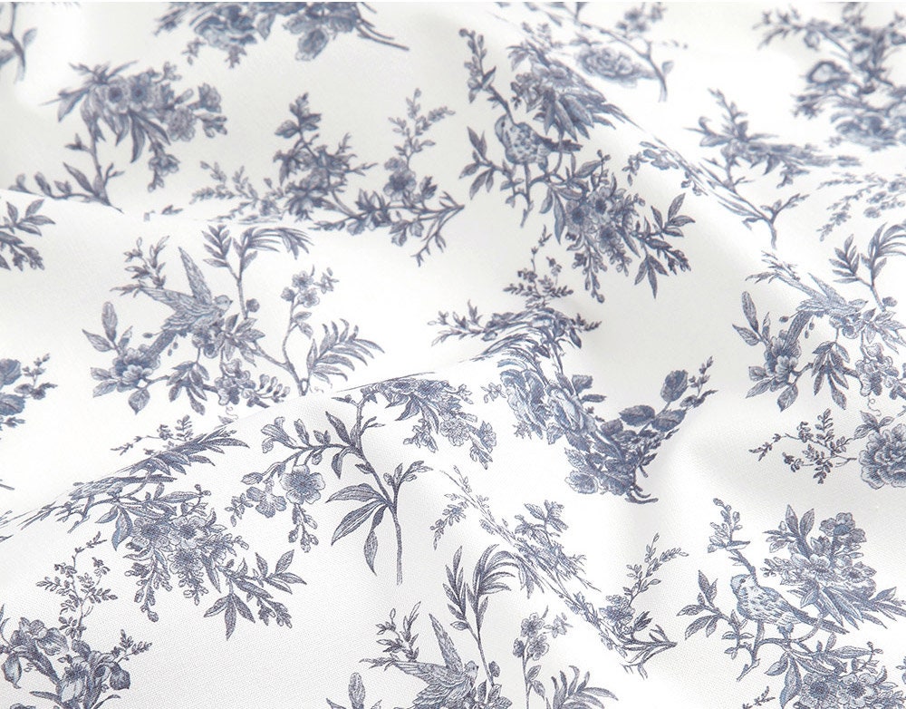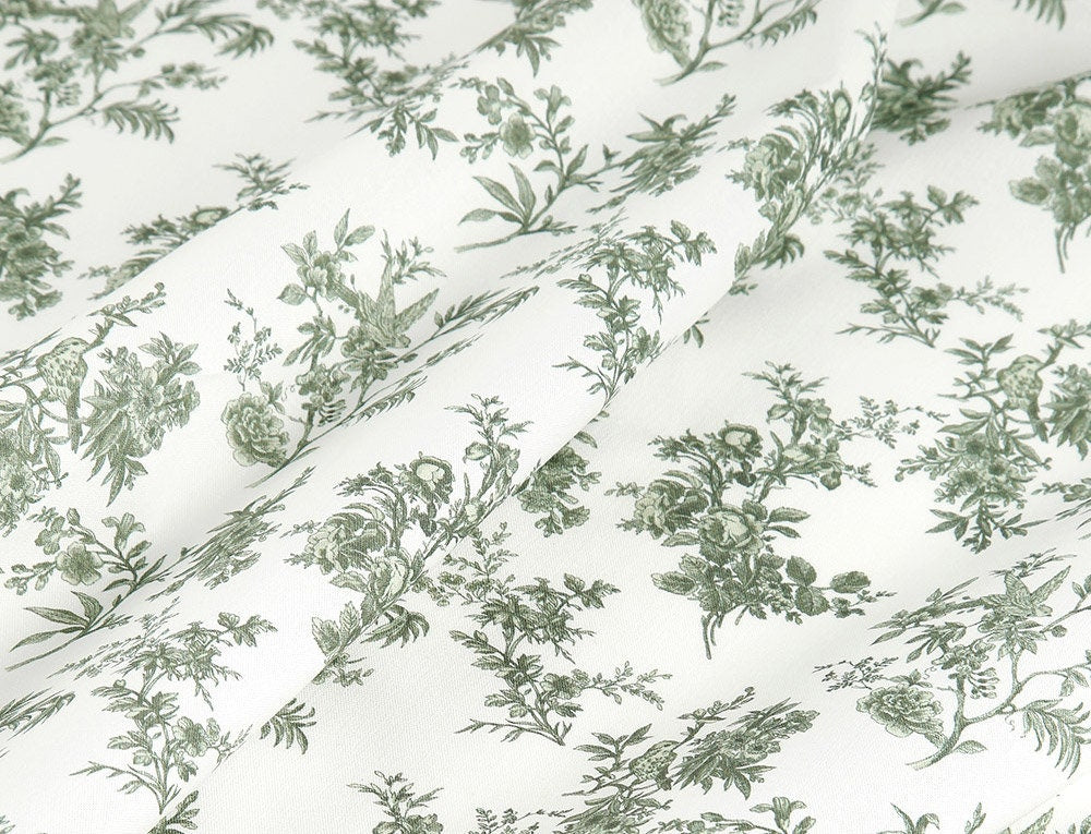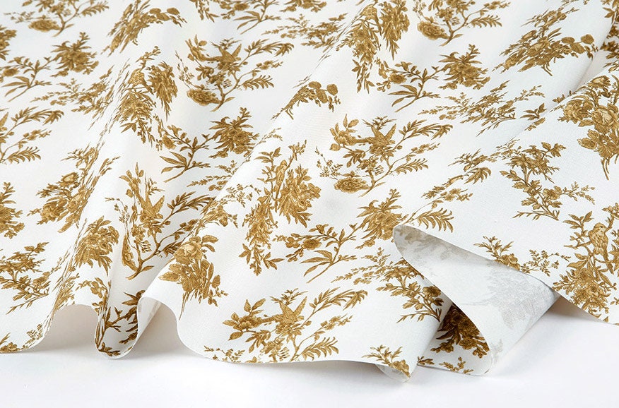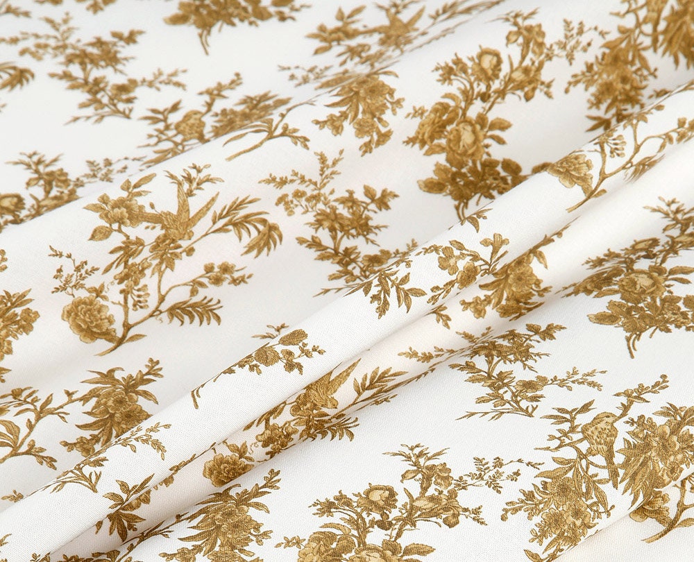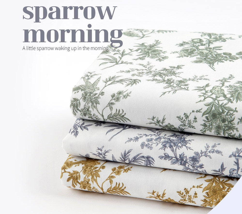Sparrow's Morning Floral & Bird Antique Patterned Fabric