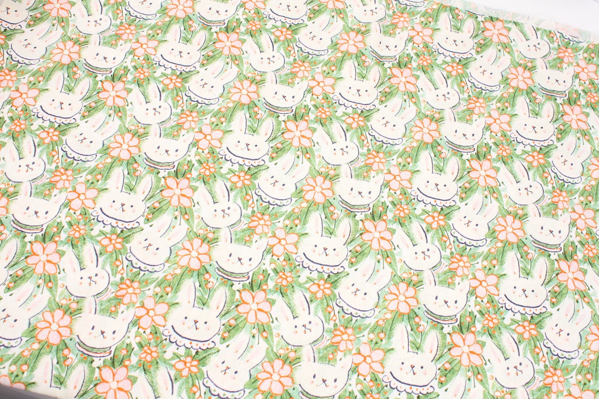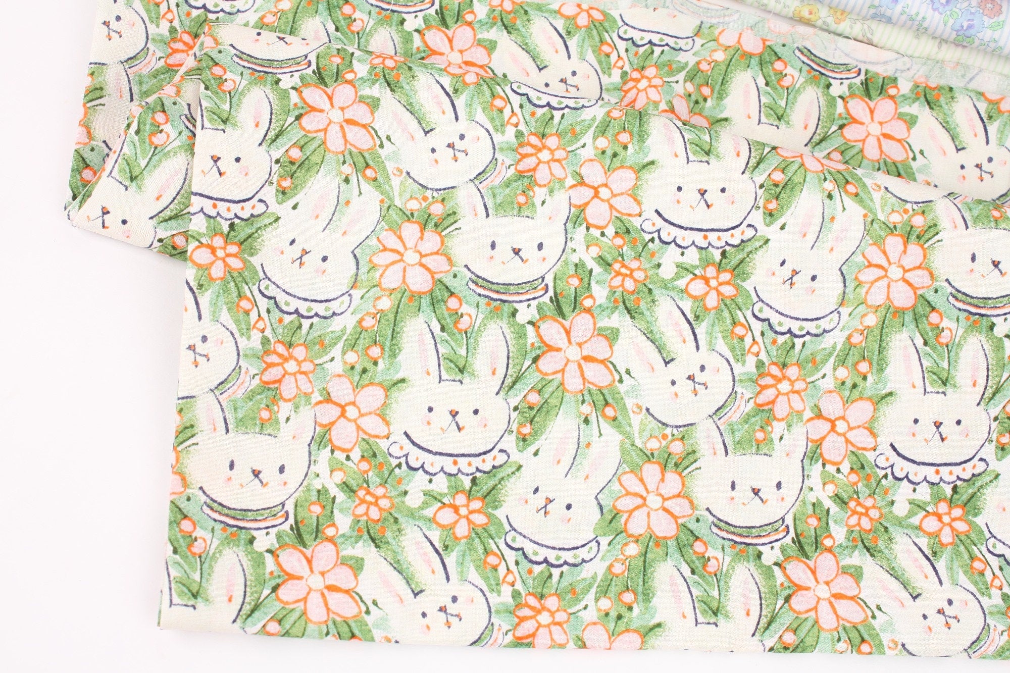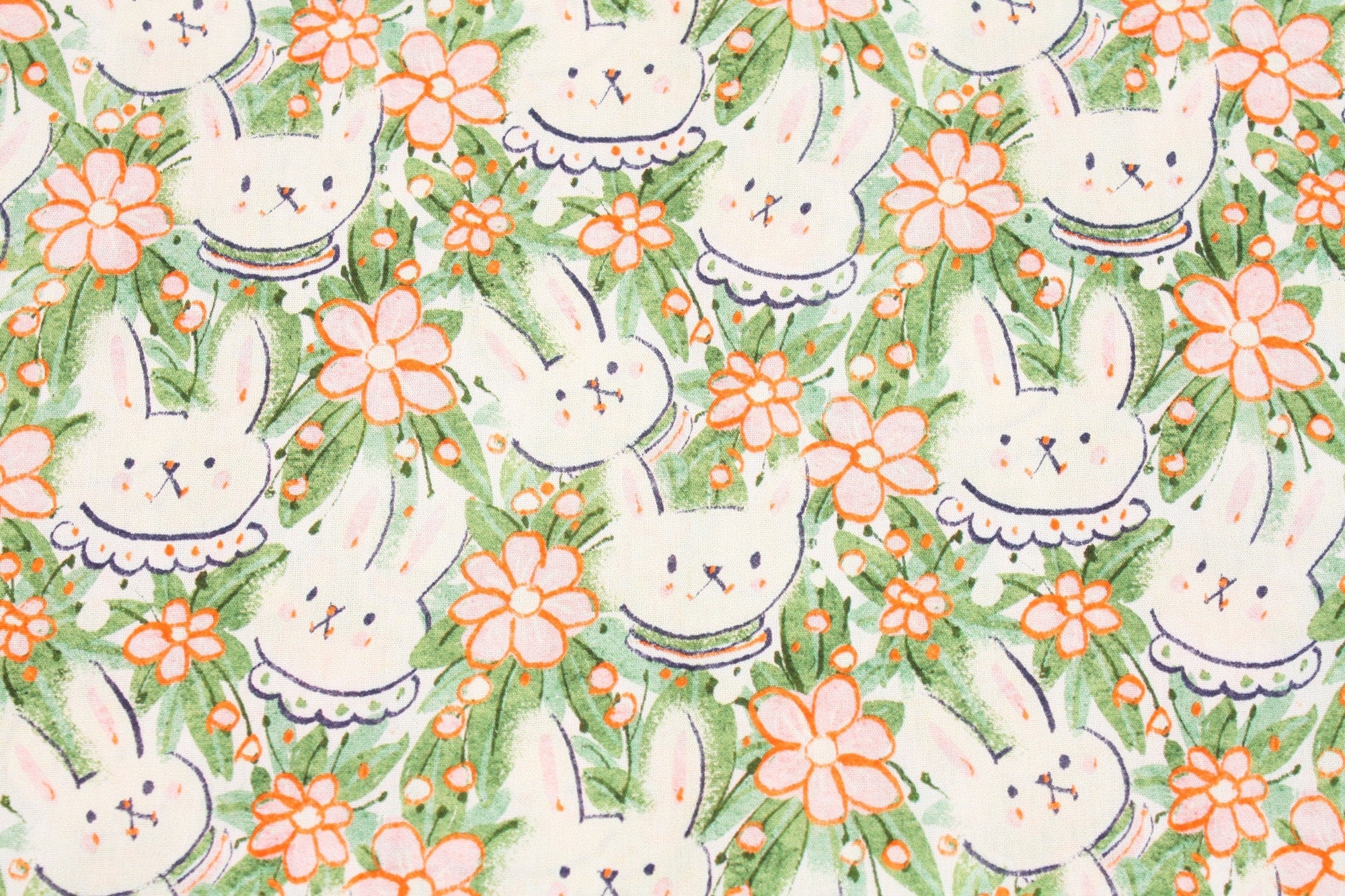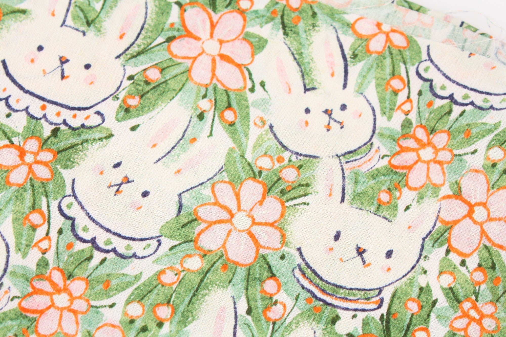 Rabbit Grass Flower Patterned Fabric, Cute, Kids, Sewing, Quilt - Korean Fabric