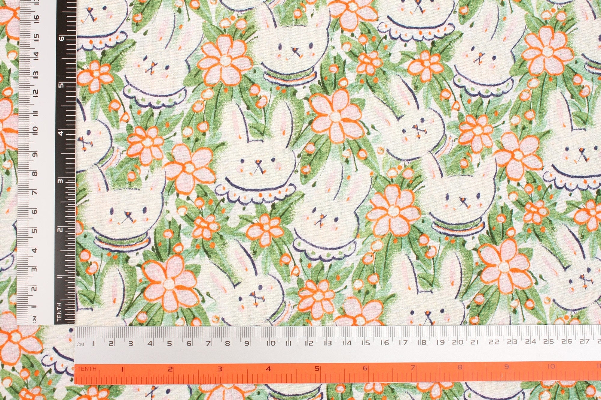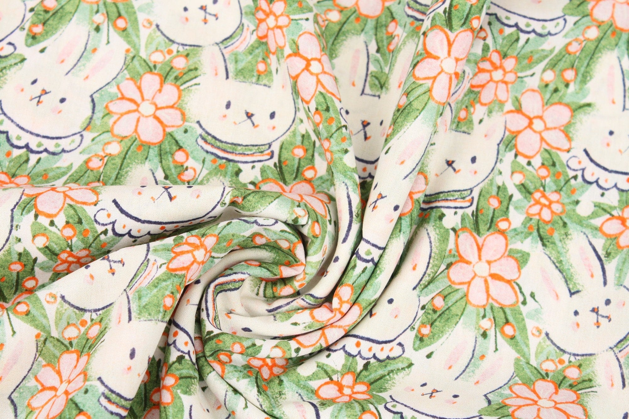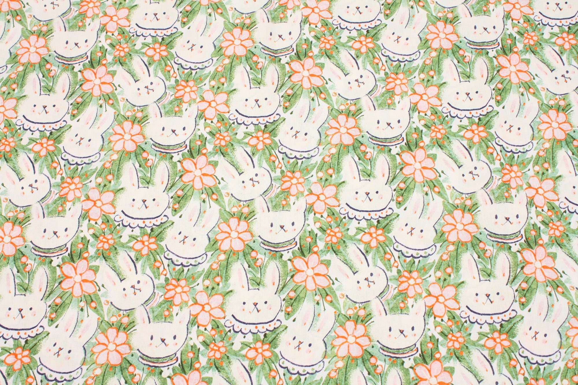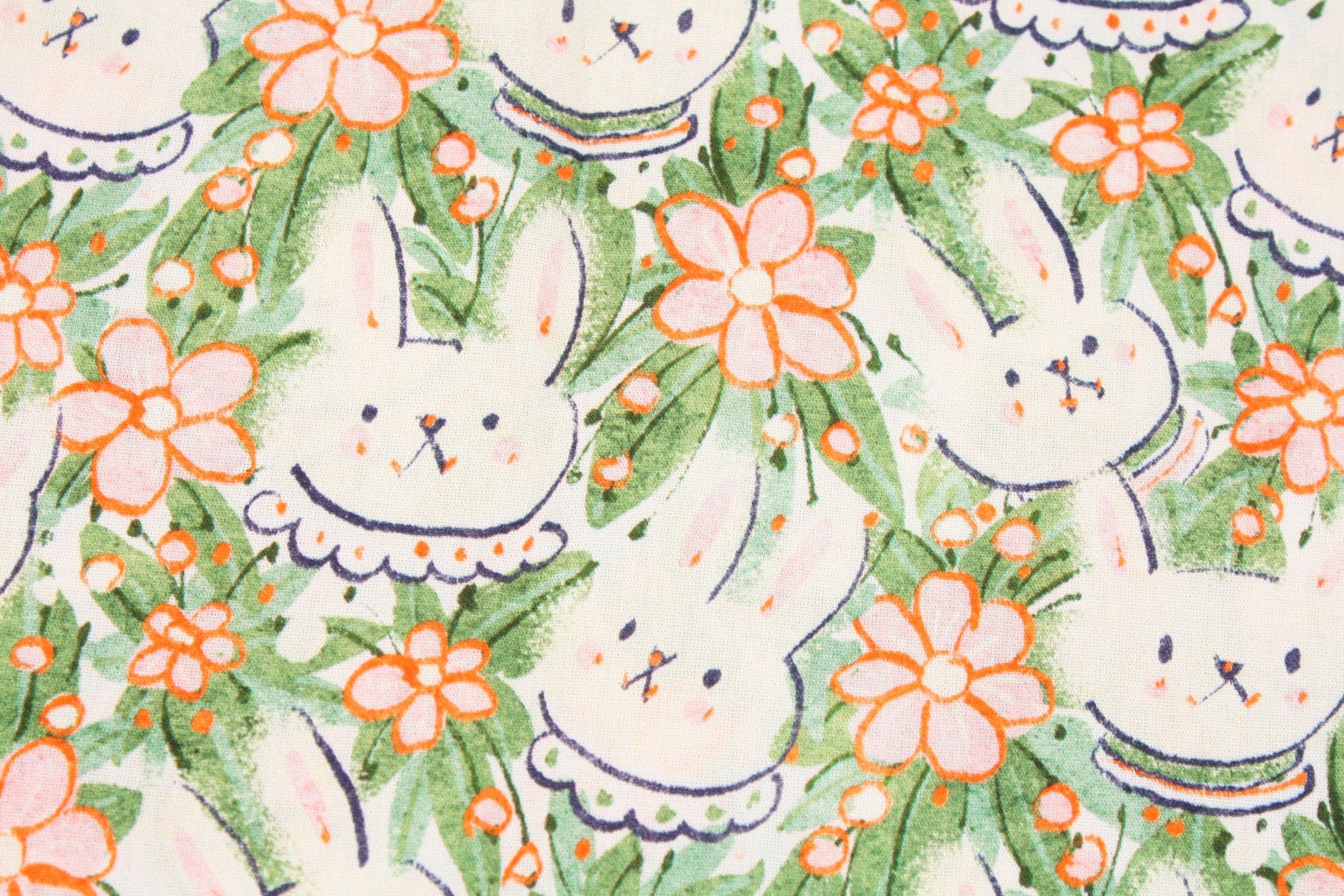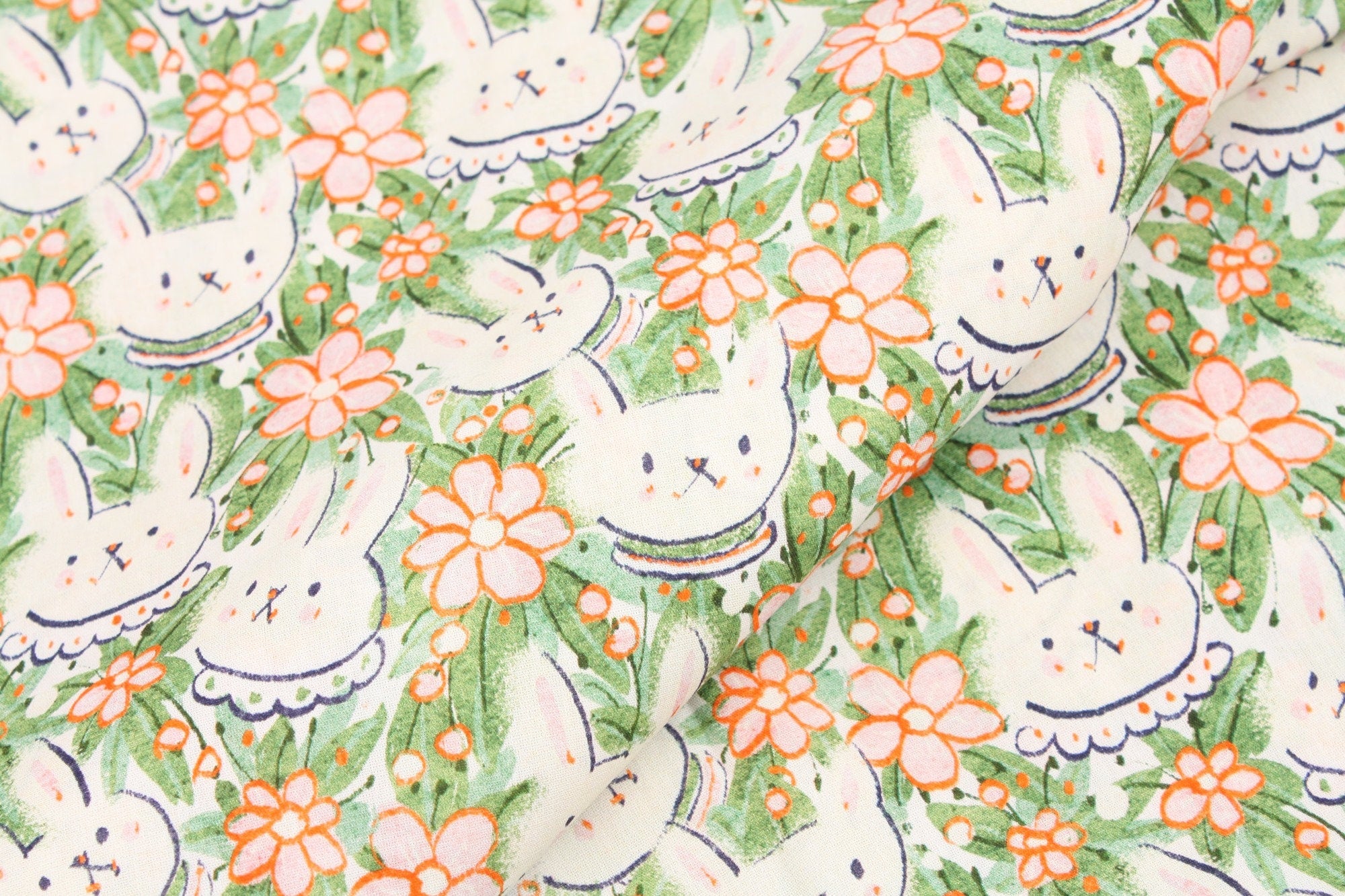 Rabbit Grass Flower Patterned Fabric, Cute, Kids, Sewing, Quilt - Korean Fabric