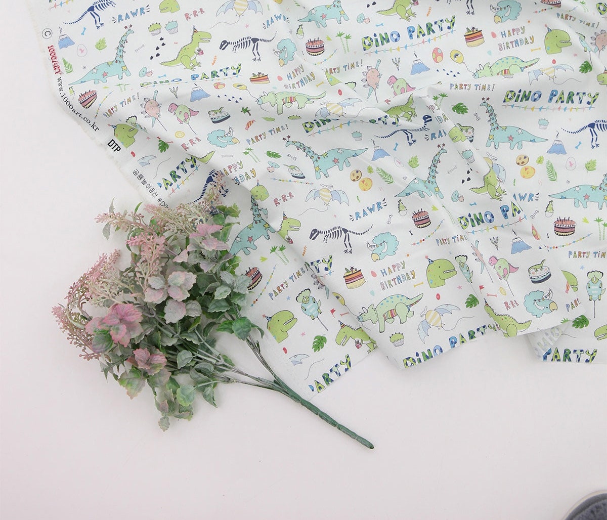 Cute Dinosaur Party Dino Theme Park Patterned Fabric, Cute, sewing, Quilt - Korean Fabric