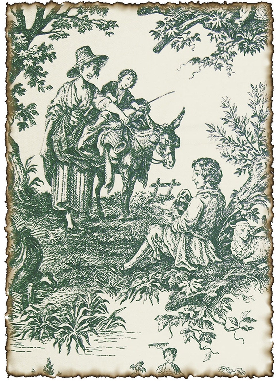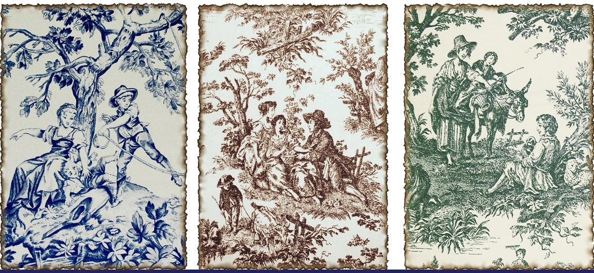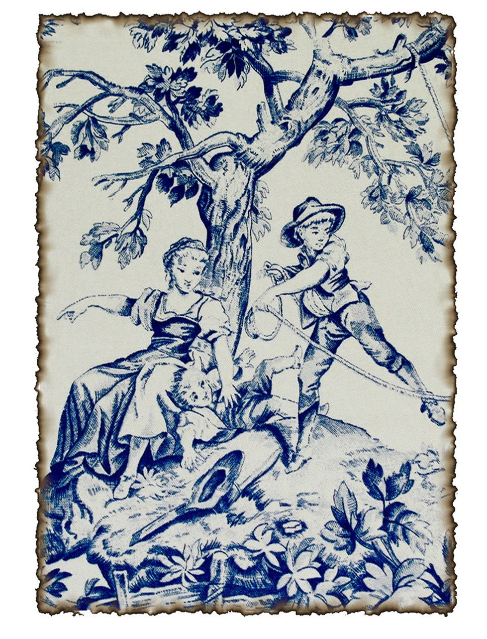Toile de Jouy Picnic Vintage Fabric Poster made in Korea