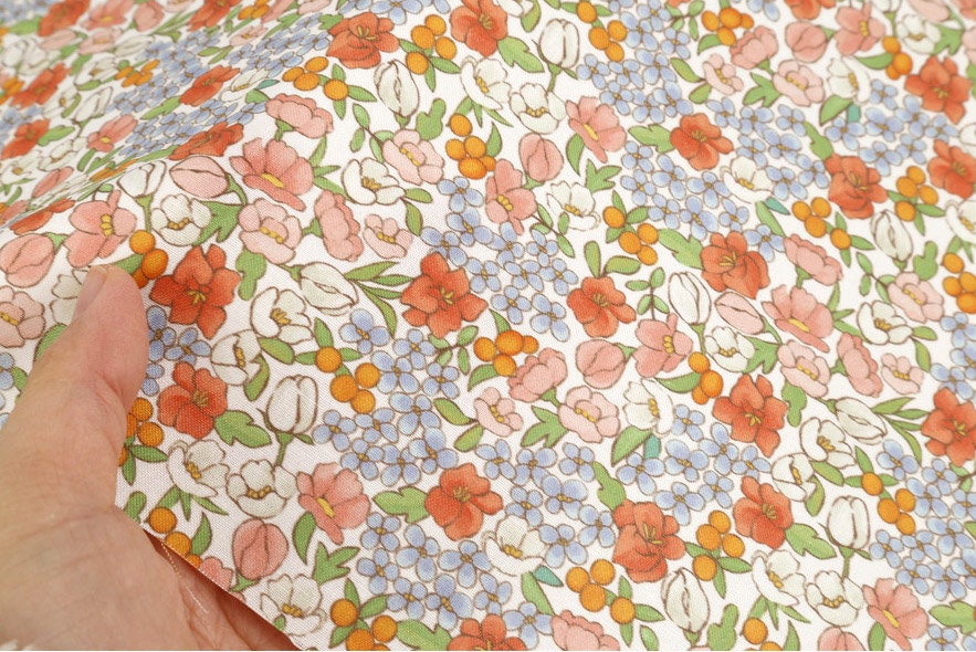 Spring Flower Floral Garden Patterned Fabric, Cute, Kids, Sewing, Quilt - Korean Fabric