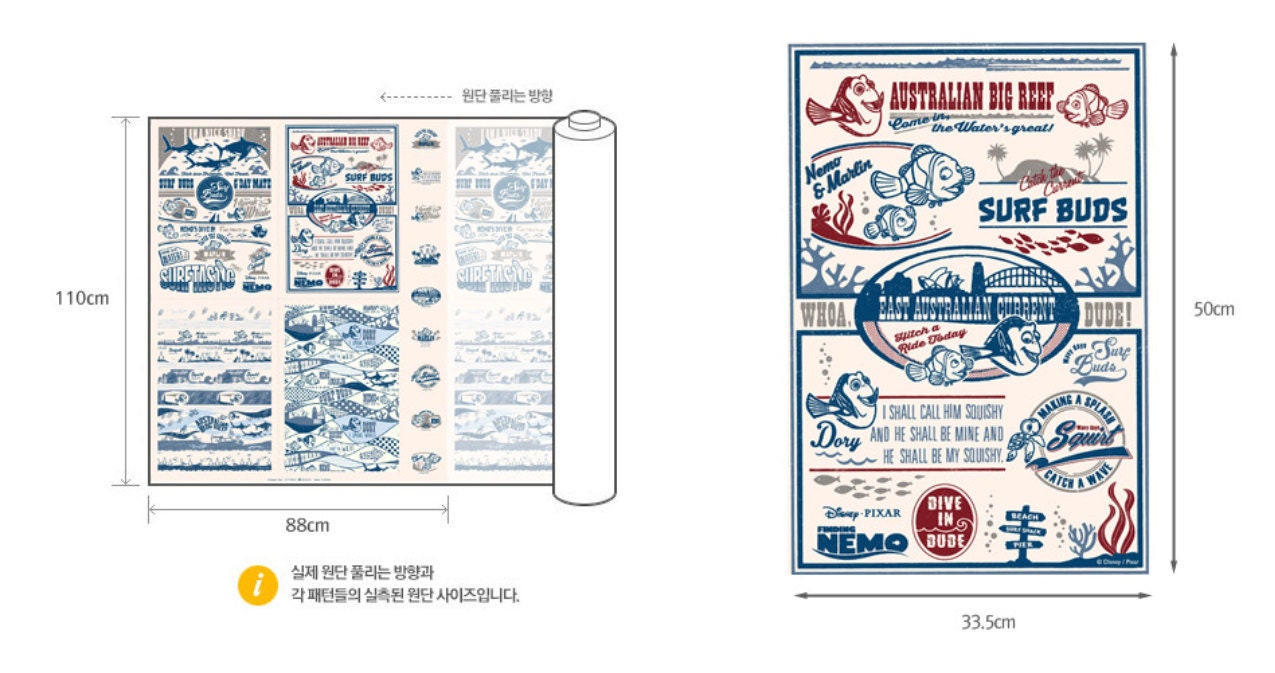 Disney&Pixar Clown Fish, Finding Nemo, Dory Character Fabric Made in Korea