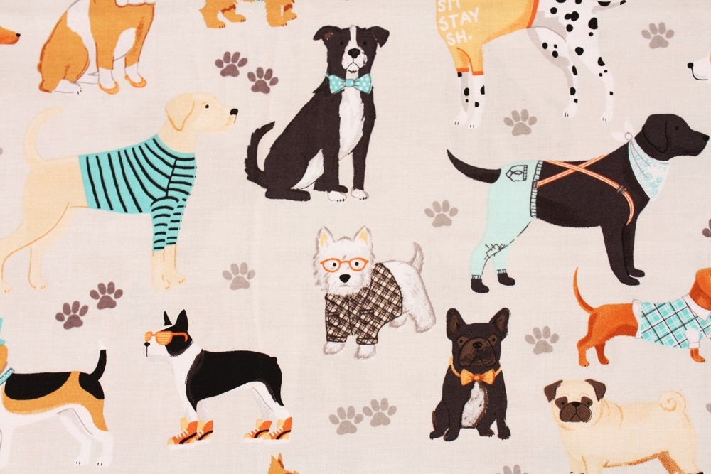 Dog, Puppy Patterned Fabric, Clothworks, By the Half Yard