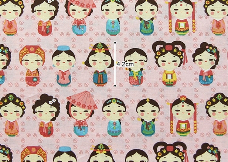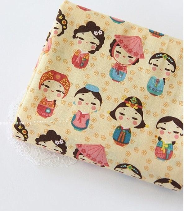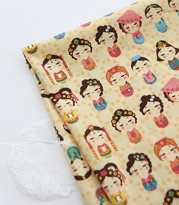 Girls in Korean Traditional Costume, Hanbok printed Fabric Korean Fabric