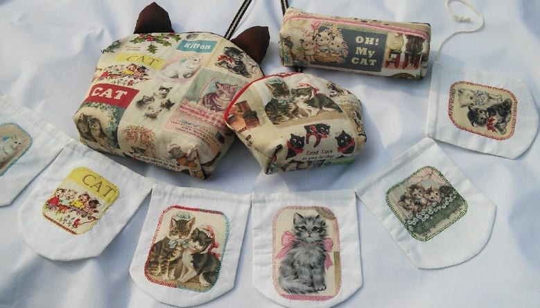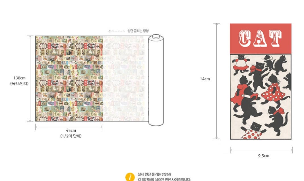 Vintage Cat Character Fabric made in Korea / Half Yard