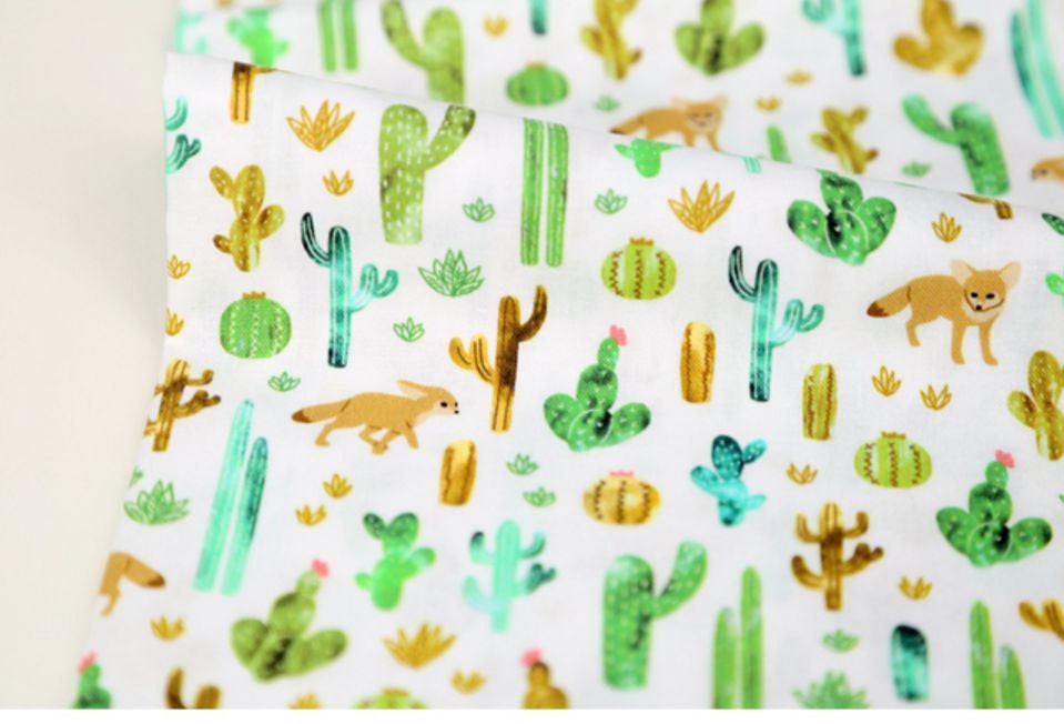 Desert Fox Cactus Patterned Fabric - Korean Fabric