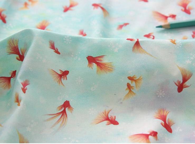 Goldfish patterned Fabric, Cute, Kids, Sewing, Quilt- Korean Fabric