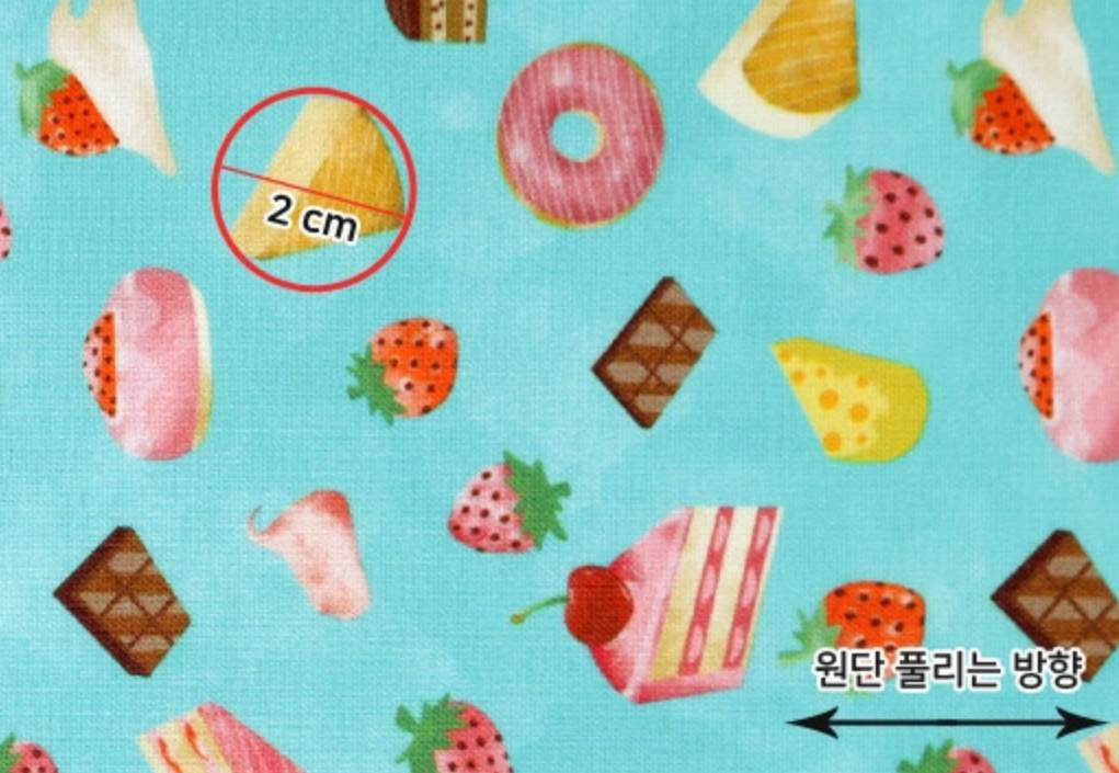 Strawberry Cake Doughnut Cheese Chocolate Patterned Fabric - Korean Fabric