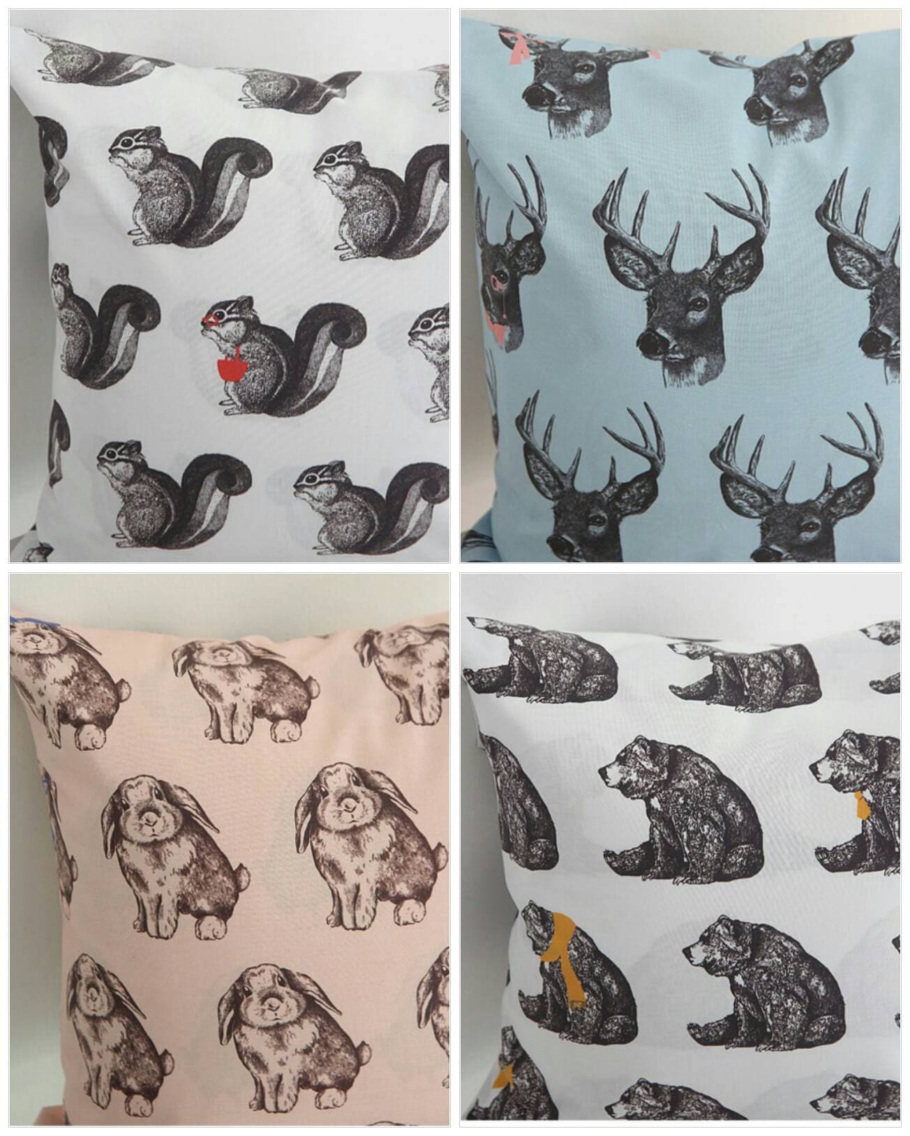 Chipmunk Rabbit Bear Deer Bunny Squirrel Patterned Fabric, Cute, Kids, Sewing, Quilt - Korean Fabric