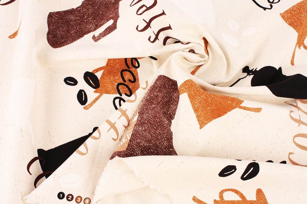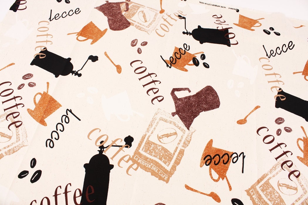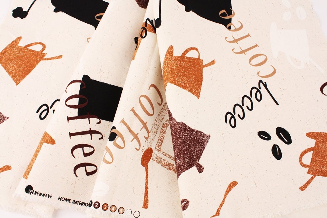 Vintage Coffee Pot Patterned Oxford Fabric - Korean Fabric