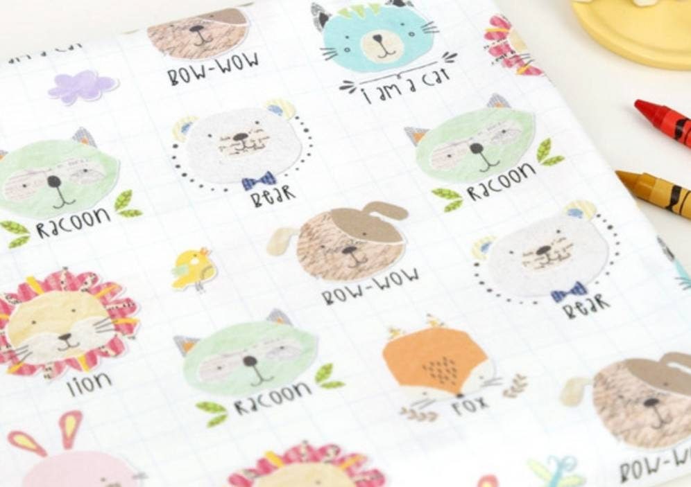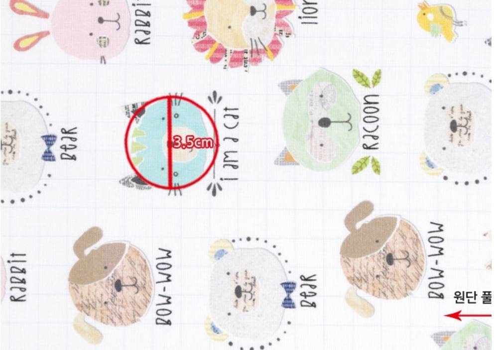 Animal Face Patterned Fabric, Cute, Kids, Sewing, Quilt - Korean Fabric