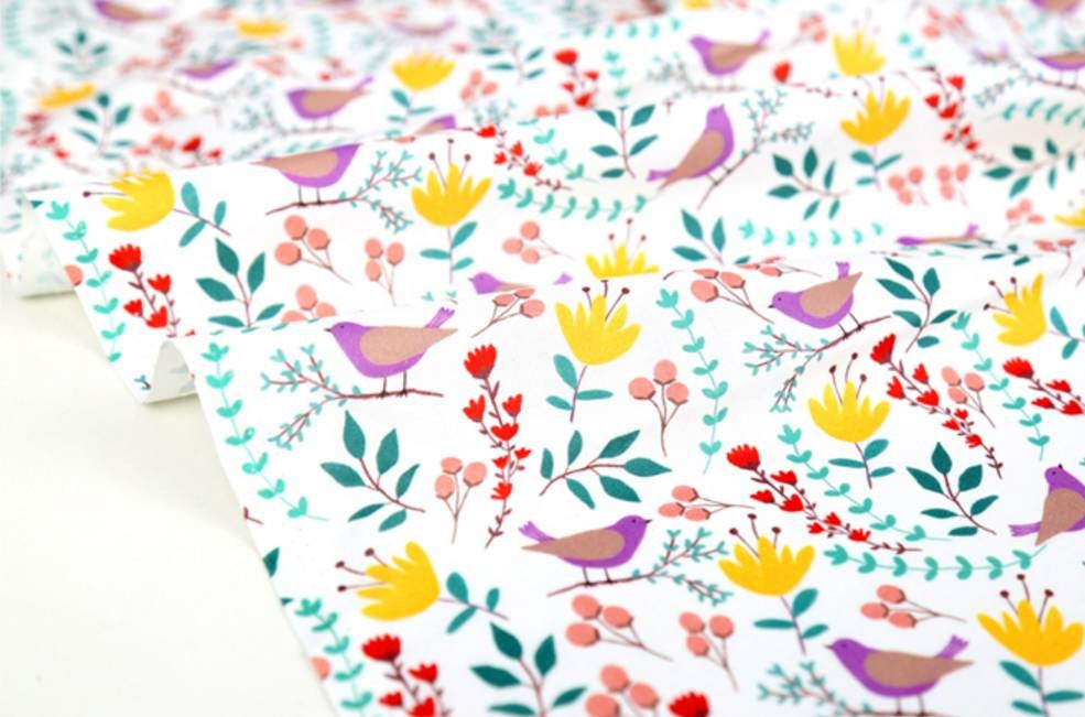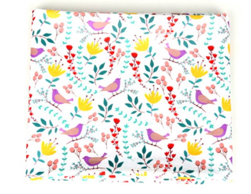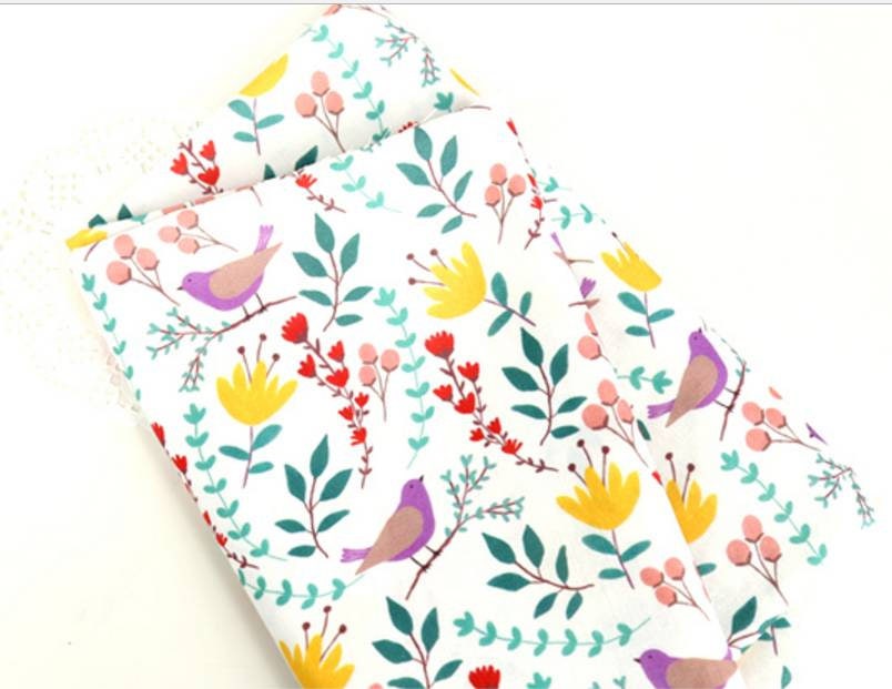 Bird and Flower Leaf Patterned Fabric, Cute, Kids, Sewing, Quilt - Korean Fabric