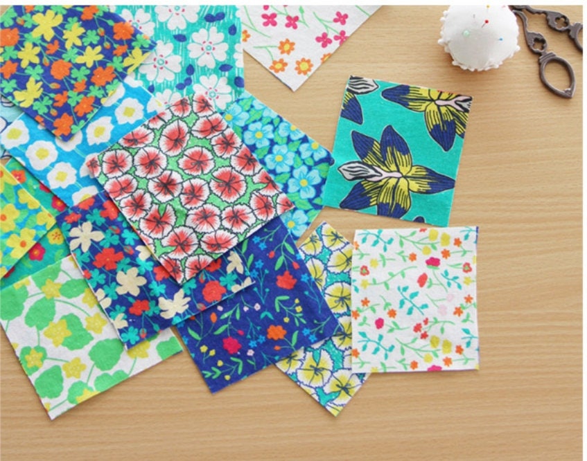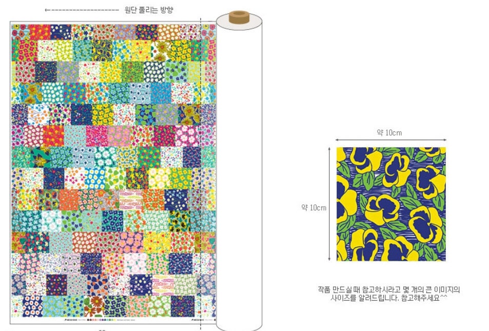 Vivid Floral Patch Patterned Fabric - Korean Fabric