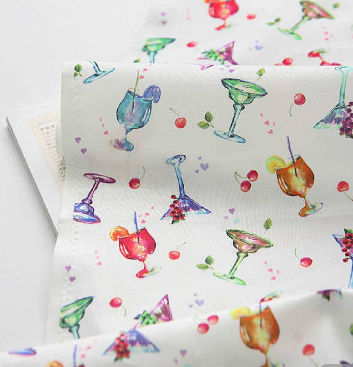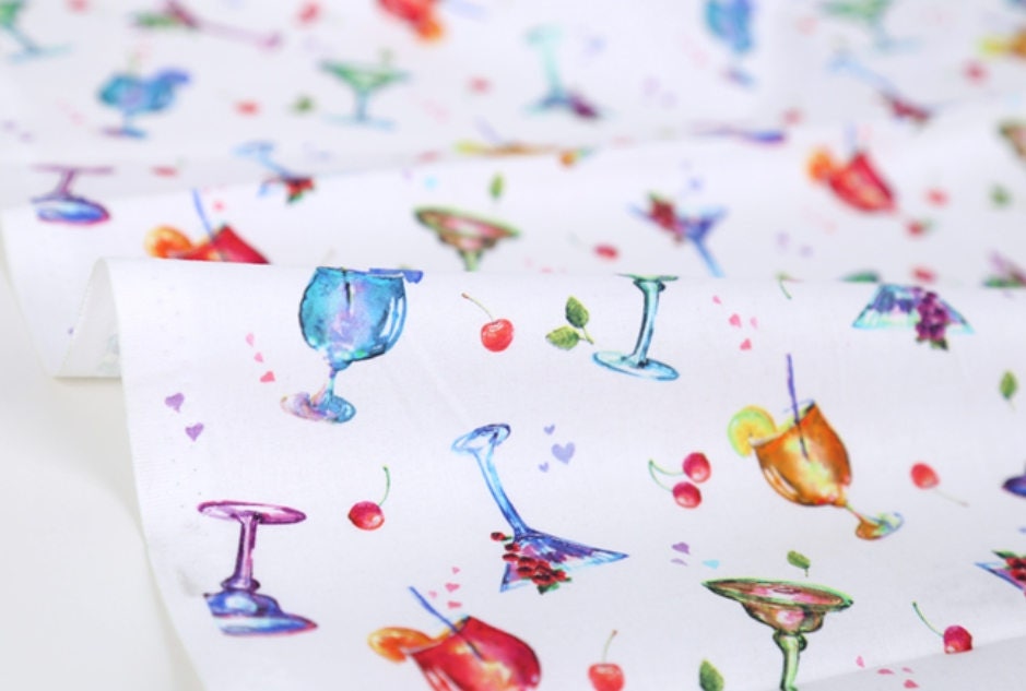 Watercolor Cocktail Patterned Fabric, Cute, Kids, Sewing, Quilt - Korean Fabric