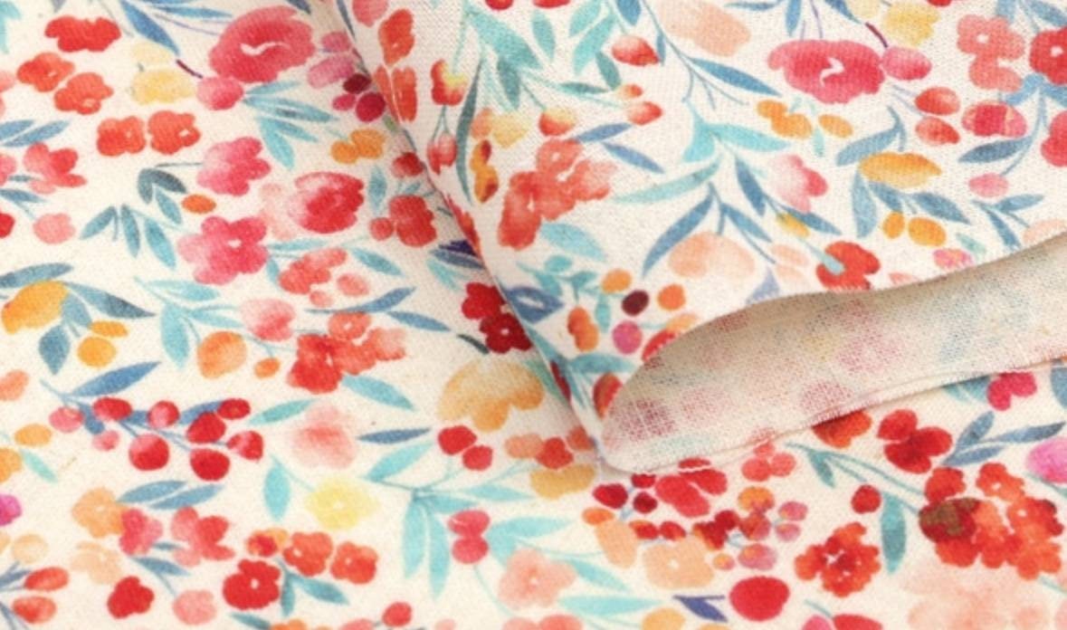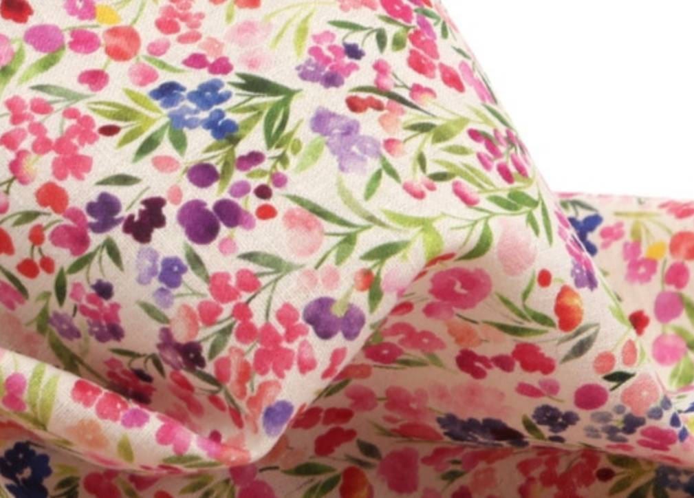 Watercolor Mini Flowers patterned fabric - Korean Fabric