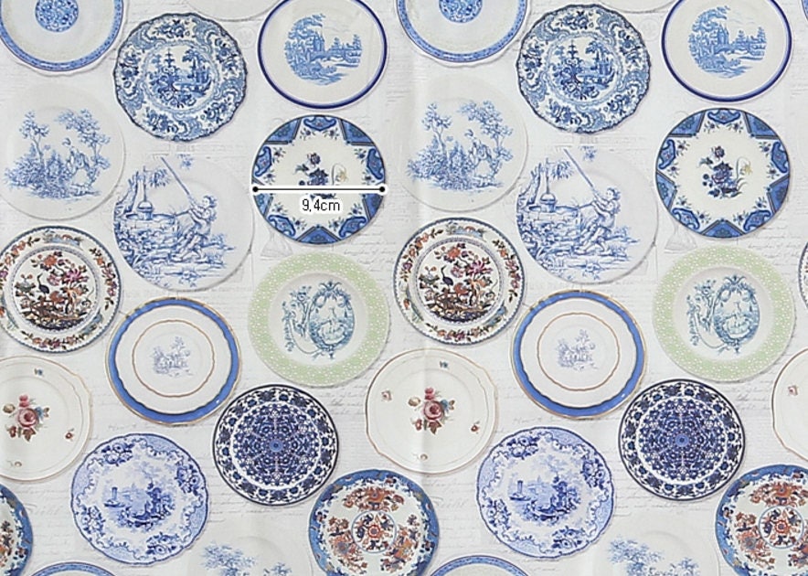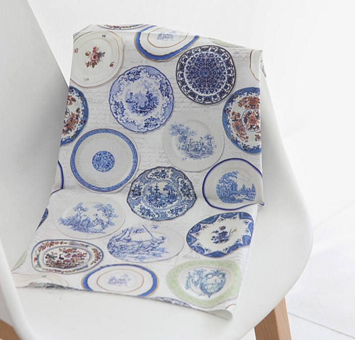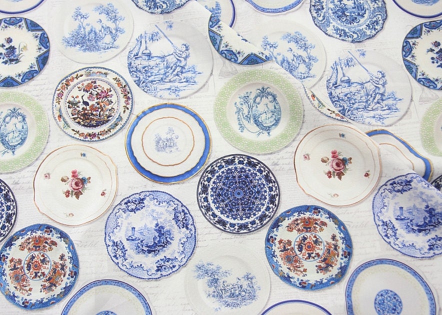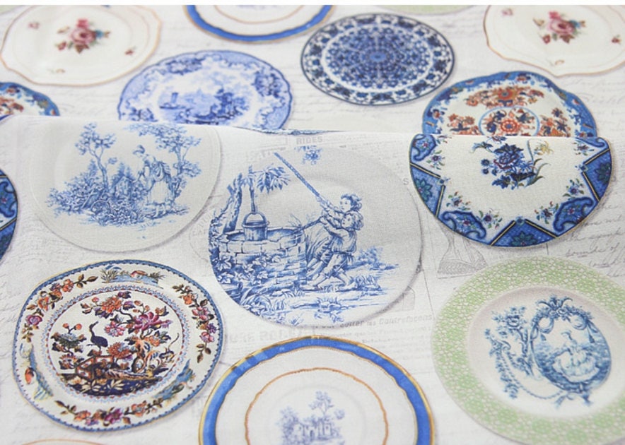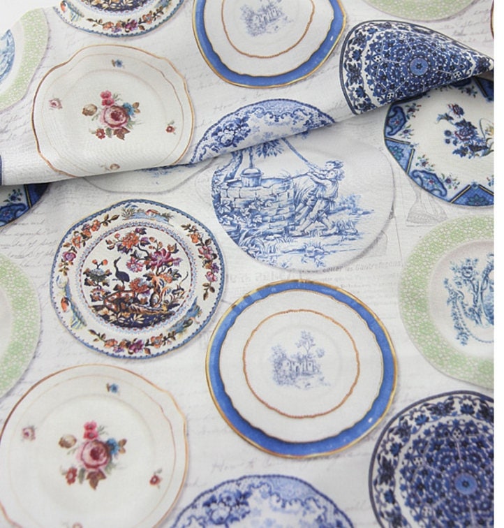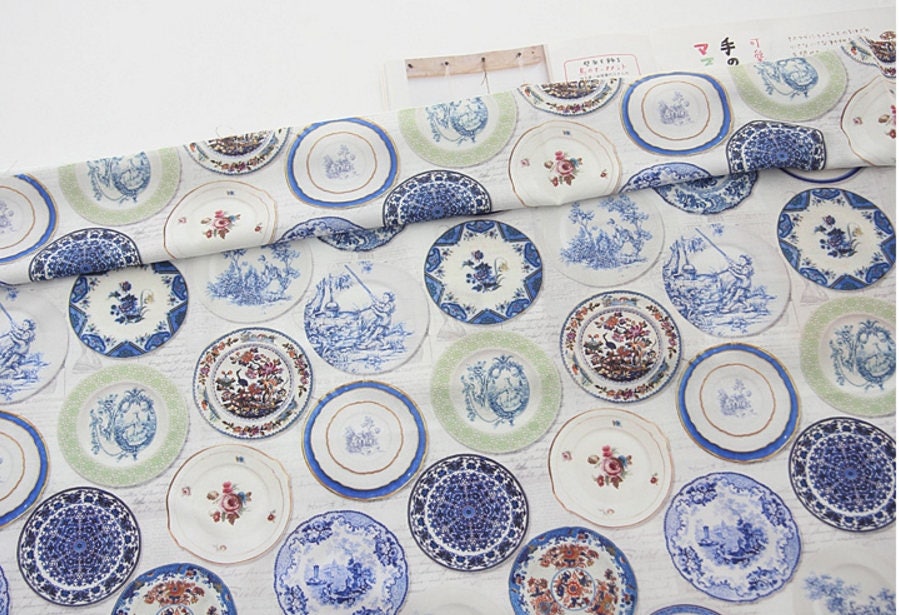 Vintage Dishes Patterned Fabric- Korean Fabric