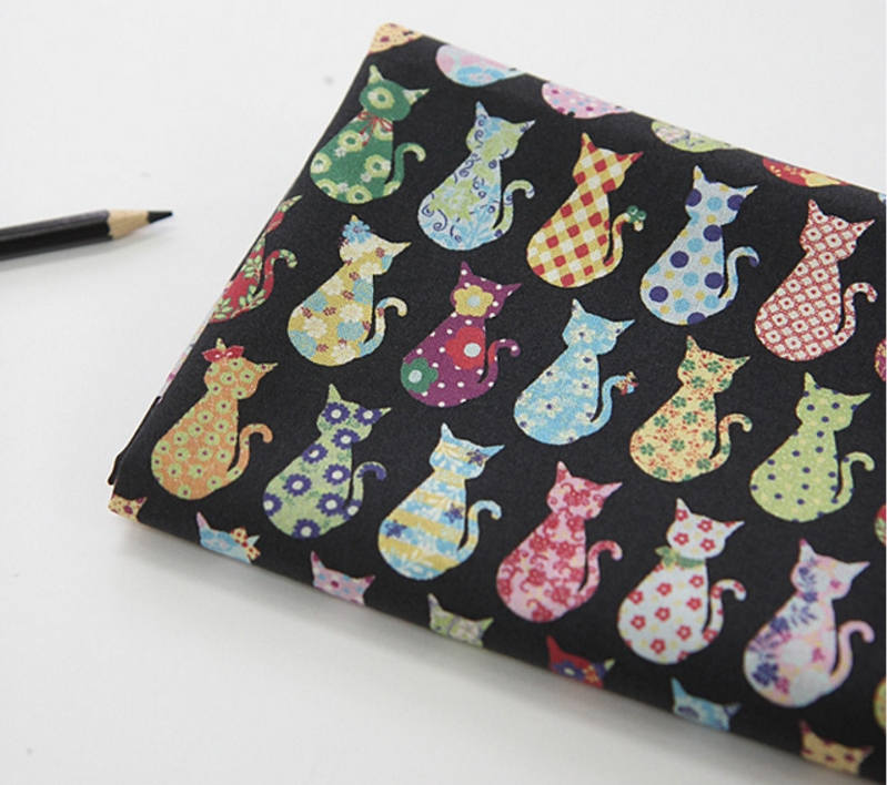 Flower Cats Patterned Fabric - Korean Fabric