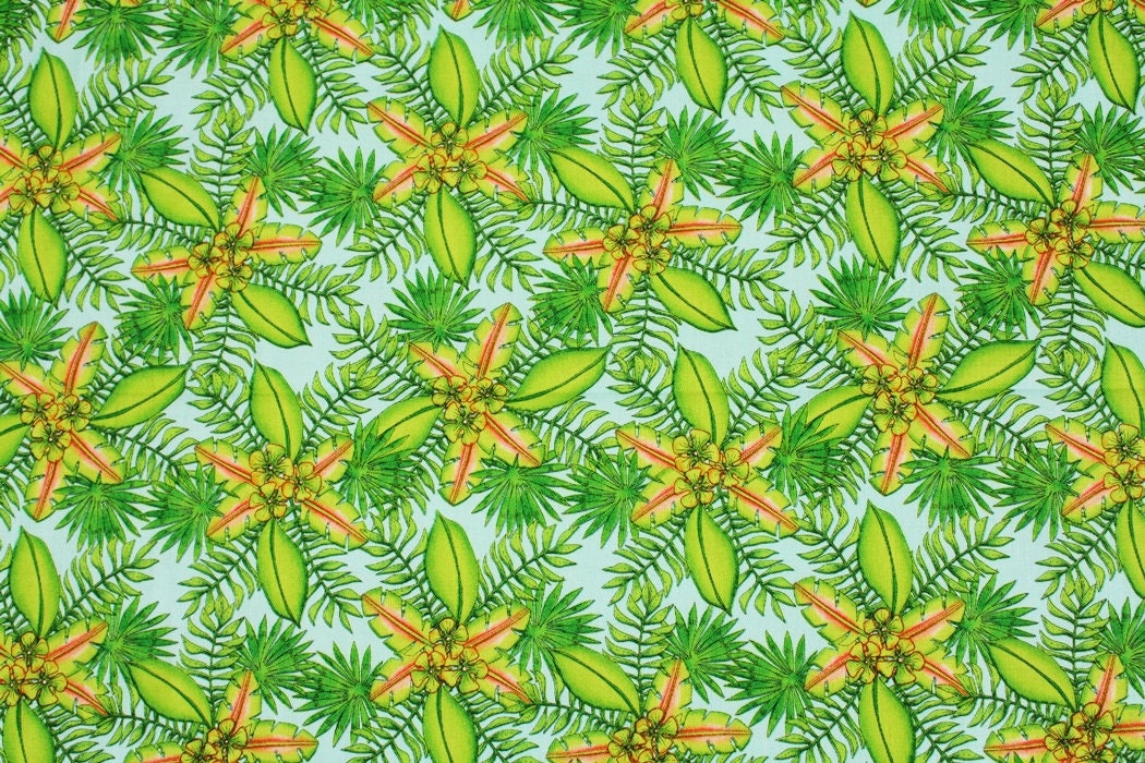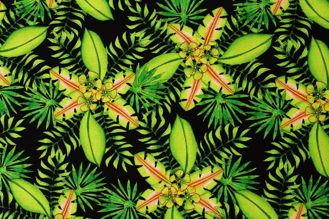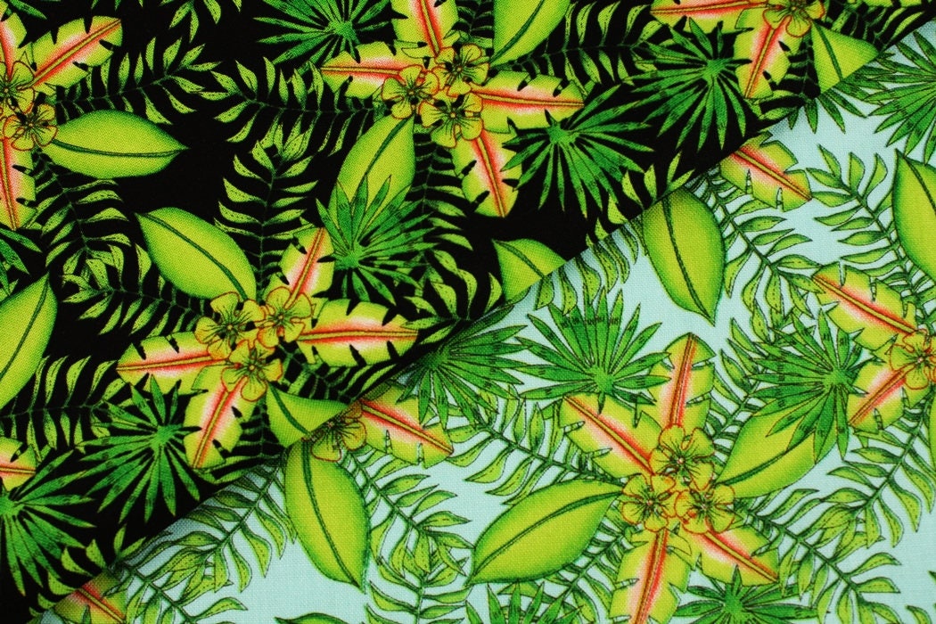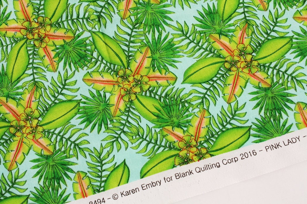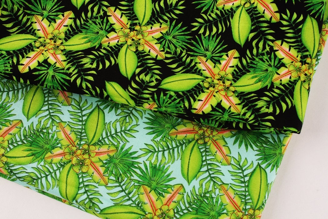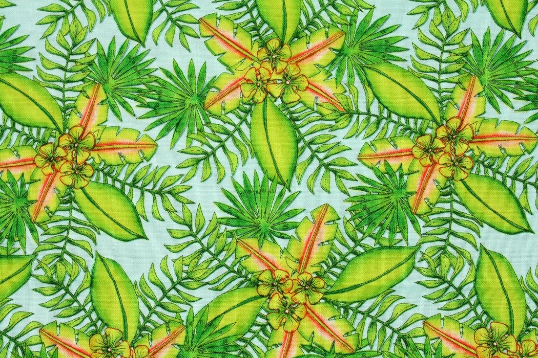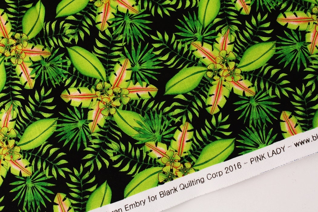 Tropical Foliage Hibiscus Flower printed Fabric for Blank Quilting Pink Lady