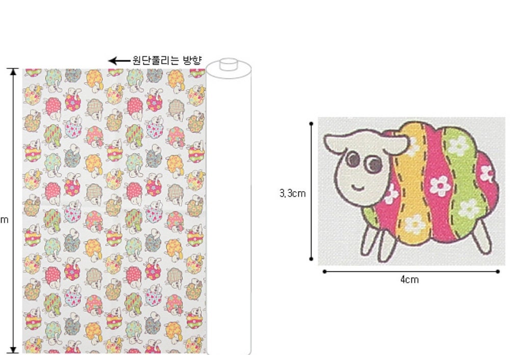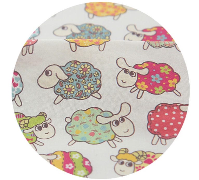Flower Sheep Patterned Fabric - Korean Fabric