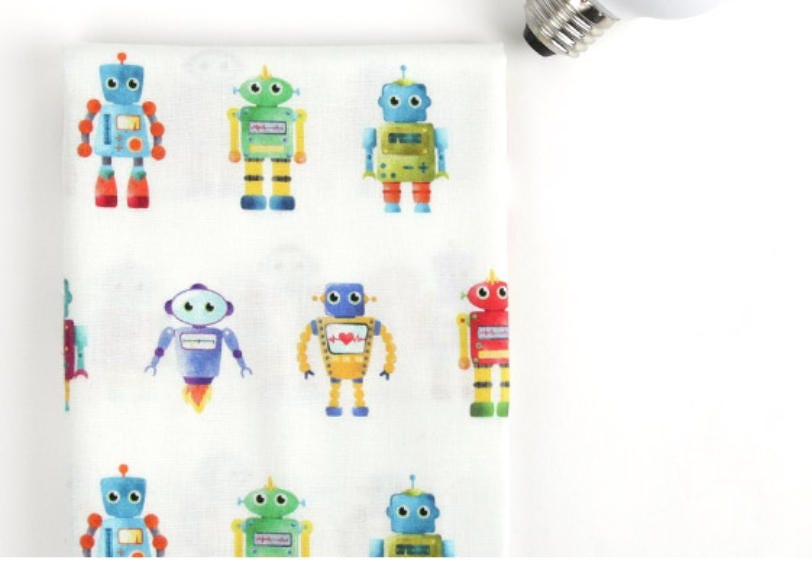 My Robot Patterned Fabric, Cute, Kids, Sewing, Quilt - Korean Fabric