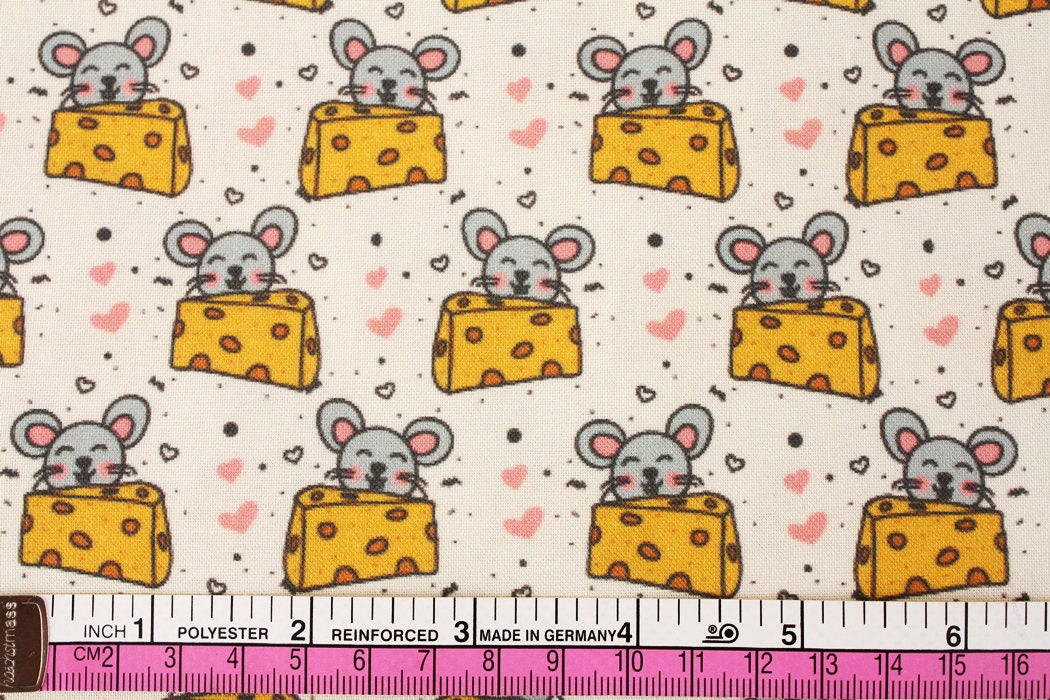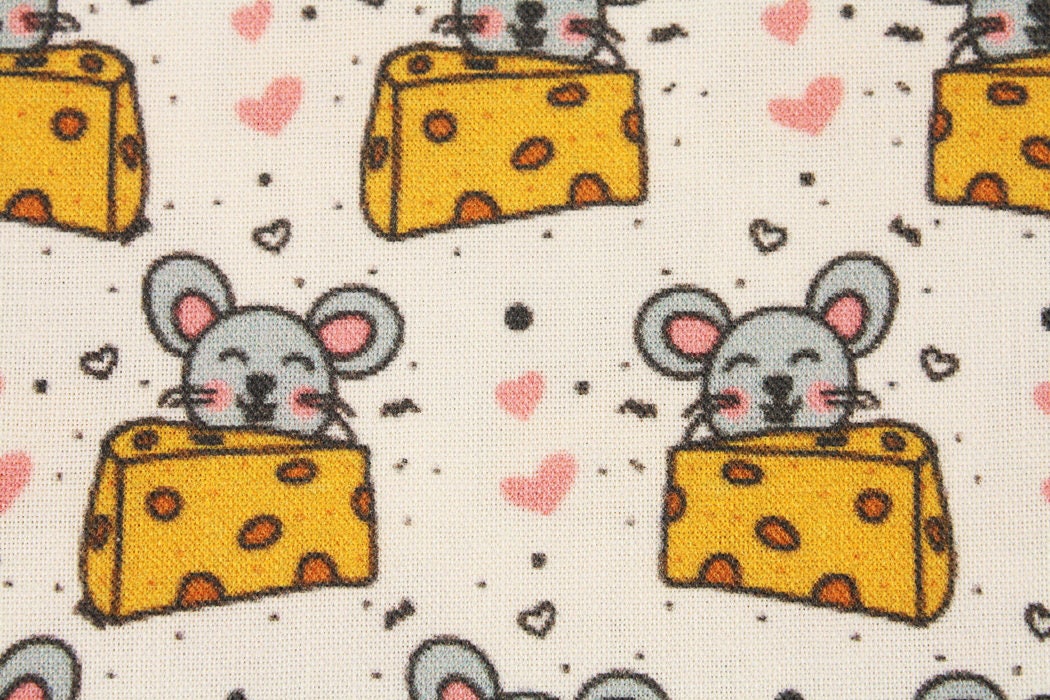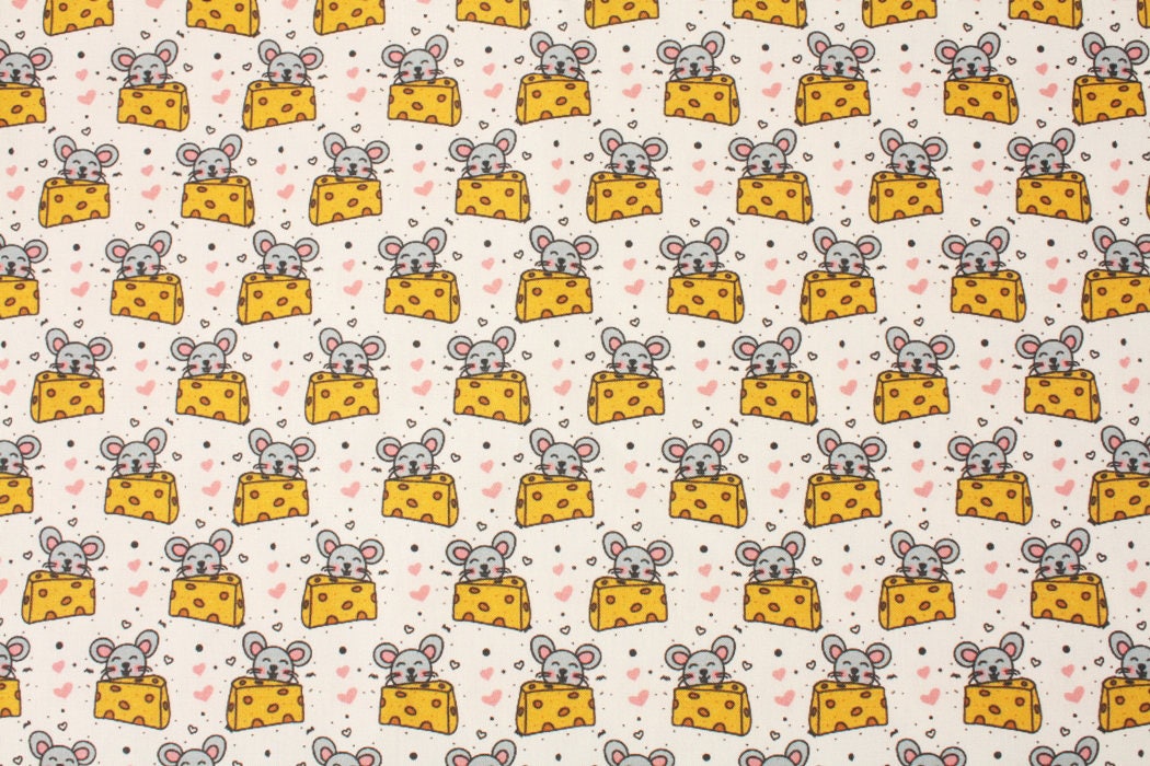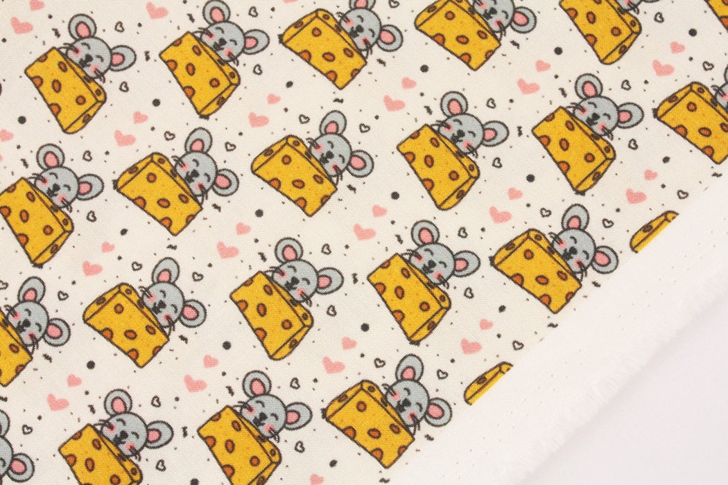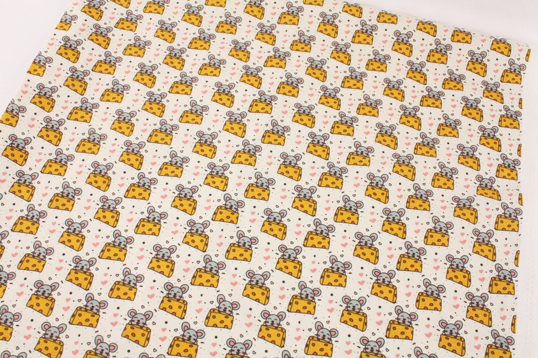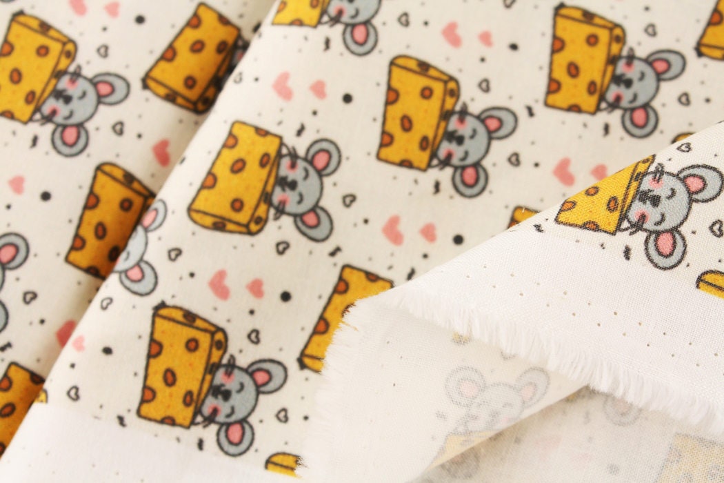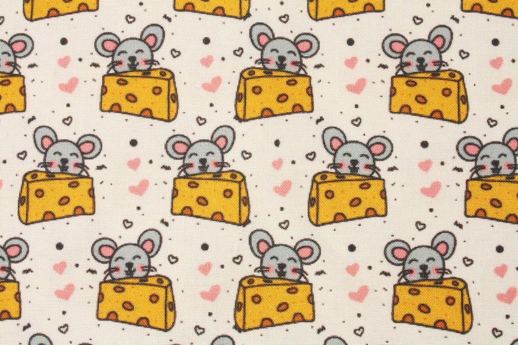 Cute Mouse Cheese Patterned Fabric, Cute, Kids, Sewing, Quilt - Korean Fabric