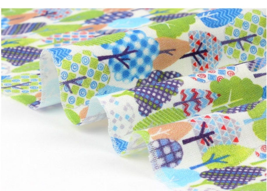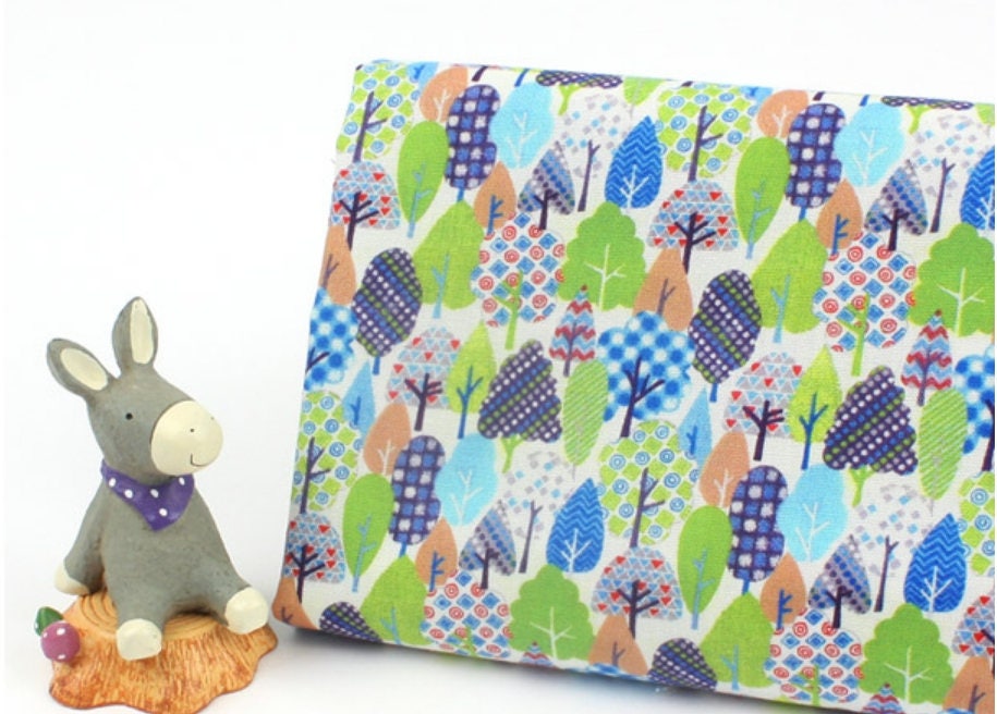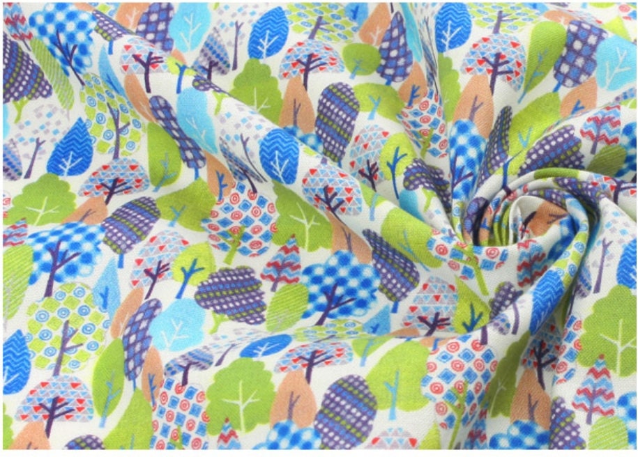 Colorful Trees Forest Patterned Fabric - Korean Fabric