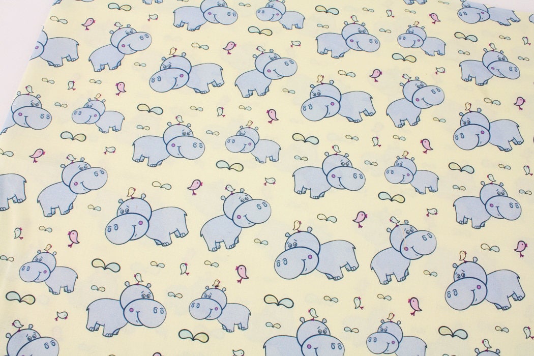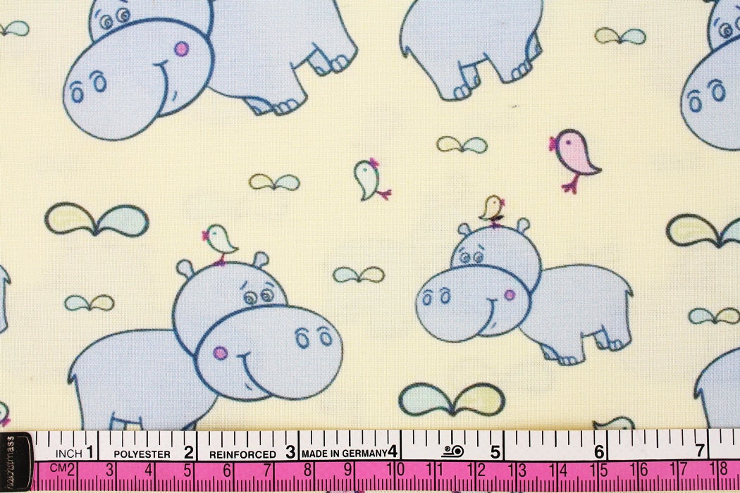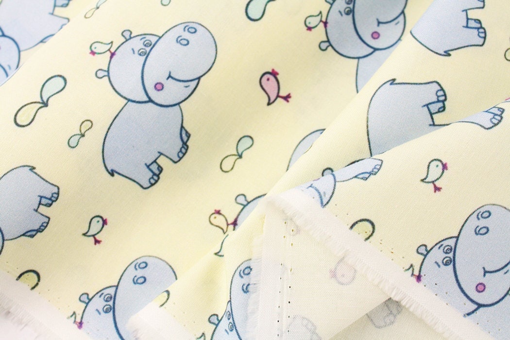 Hippo Bird Patterned Fabric, Cute, Kids, Sewing, Quilt - Korean Fabric