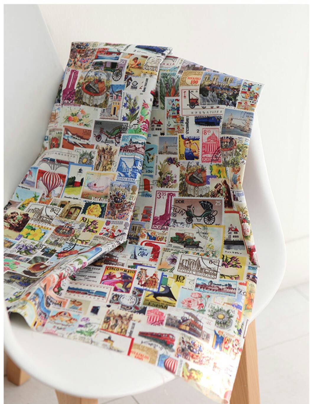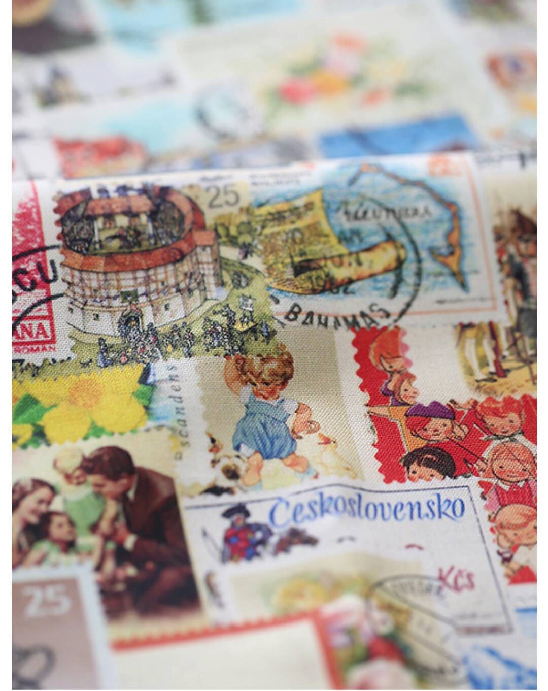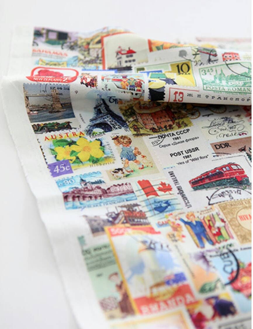 Vintage Postage Stamp Patterned Fabric- Korean Fabric