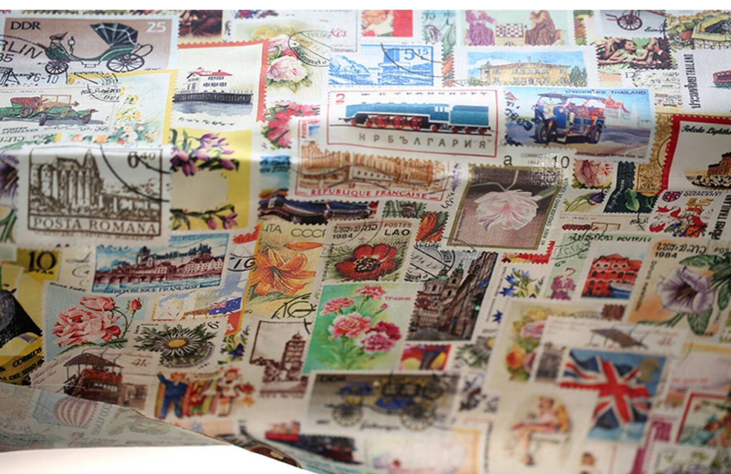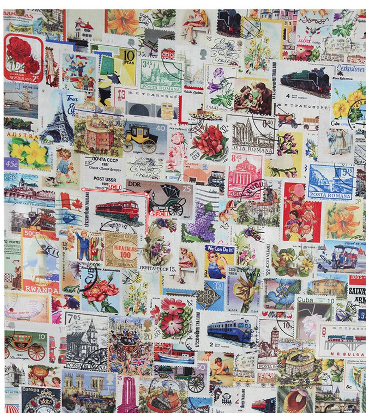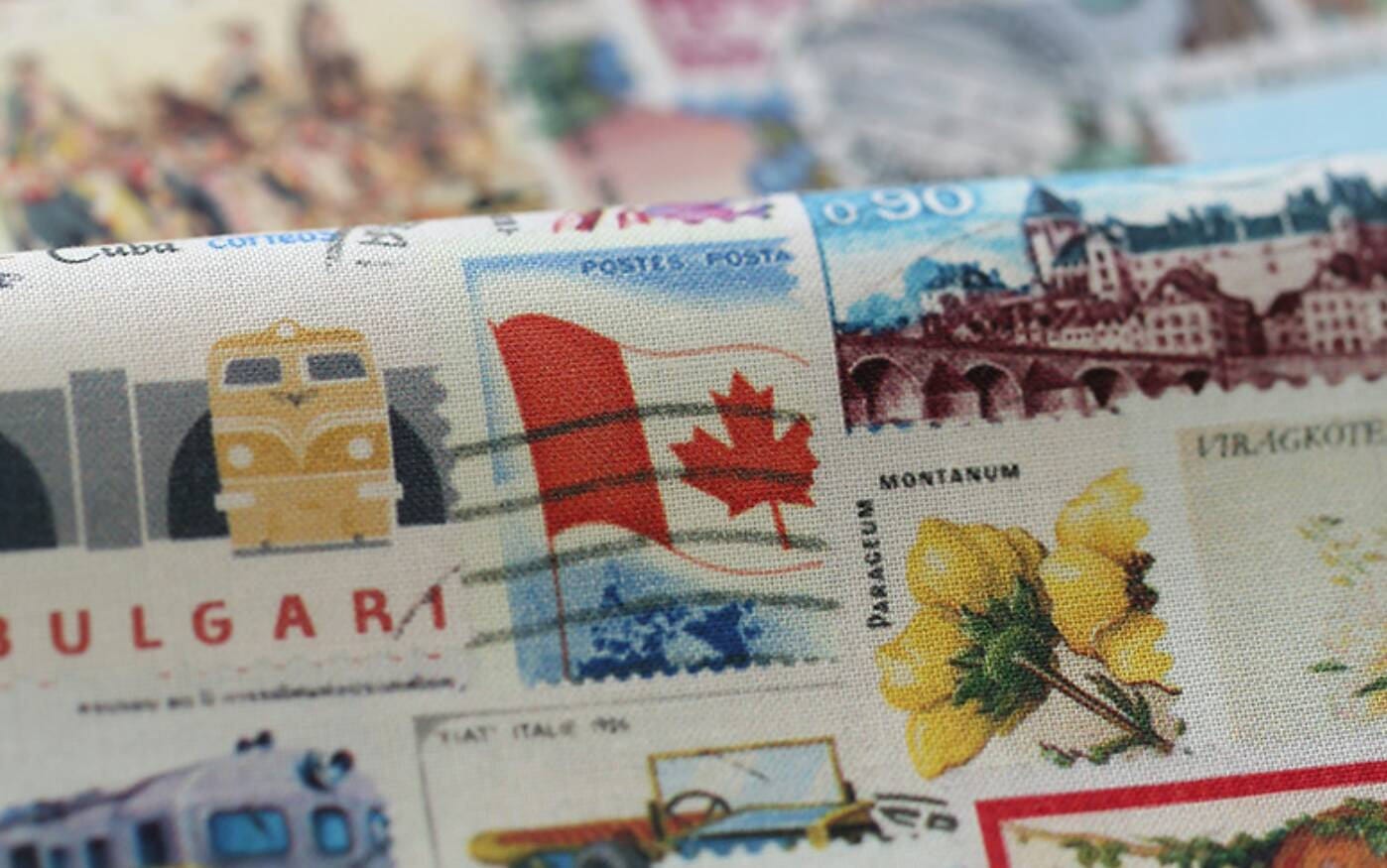 Vintage Postage Stamp Patterned Fabric- Korean Fabric