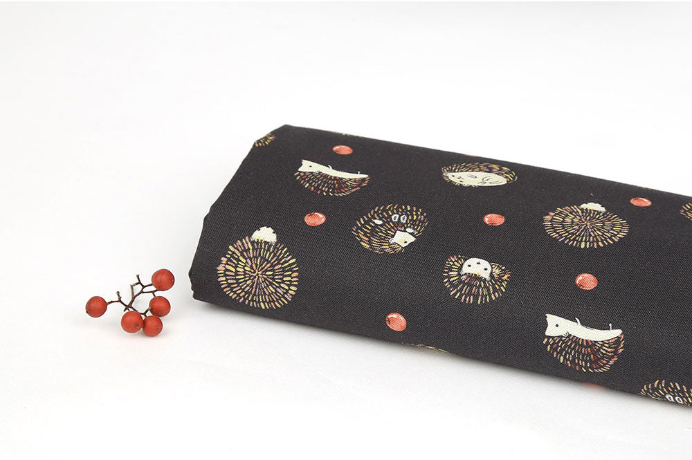 Apple Hedgehog Patterned Fabric - Korean Fabric
