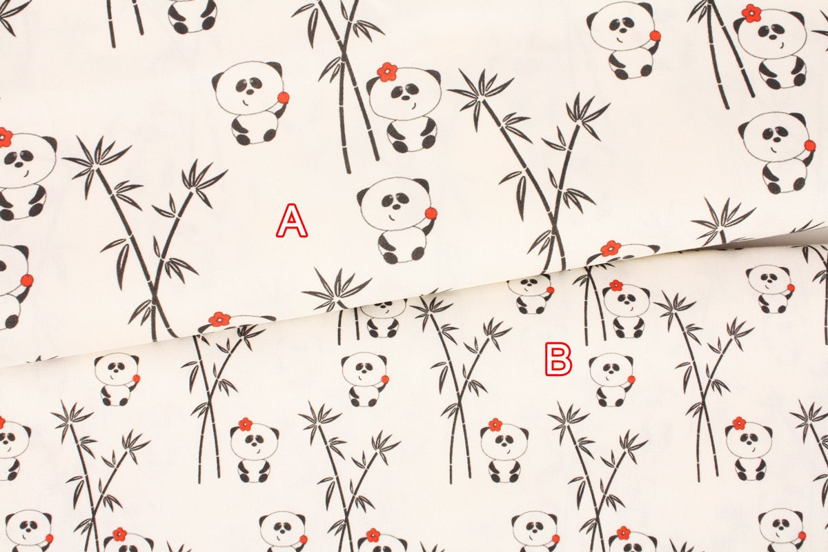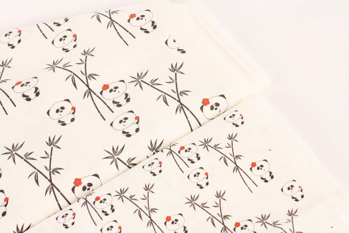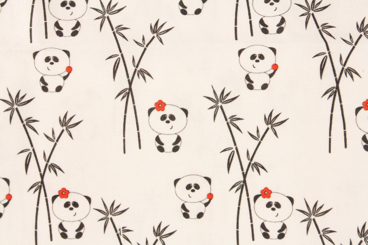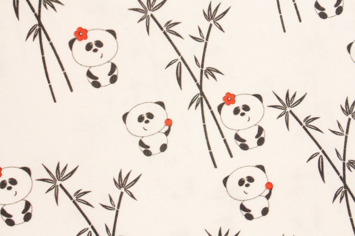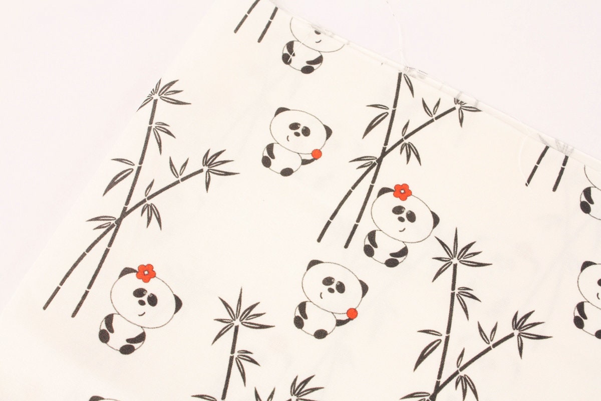 Kawaii Panda Bamboo Patterned Fabric - Korean Fabric