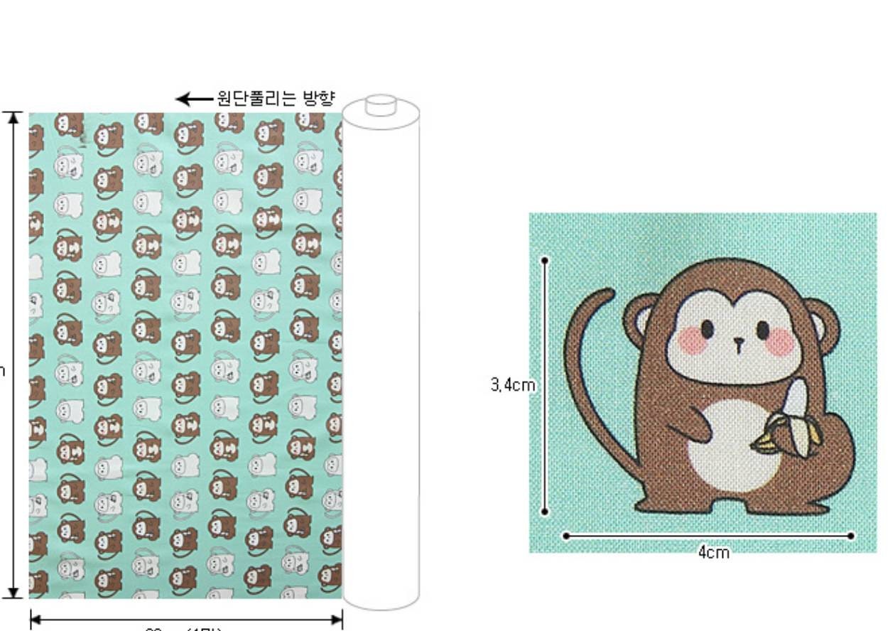 Monkey Patterned Fabric, Cute, Kids, Sewing, Quilt - Korean Fabric
