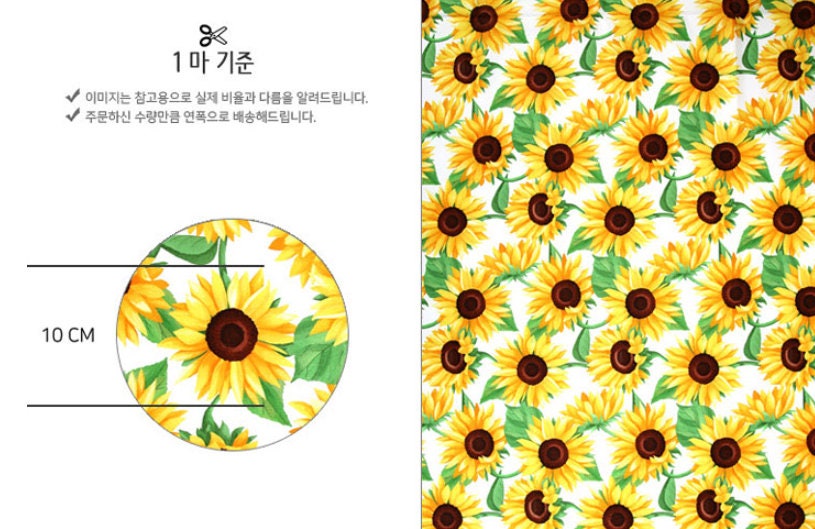 Sunflower Patterned Fabric, Cute, sewing, Quilt - Korean Fabric