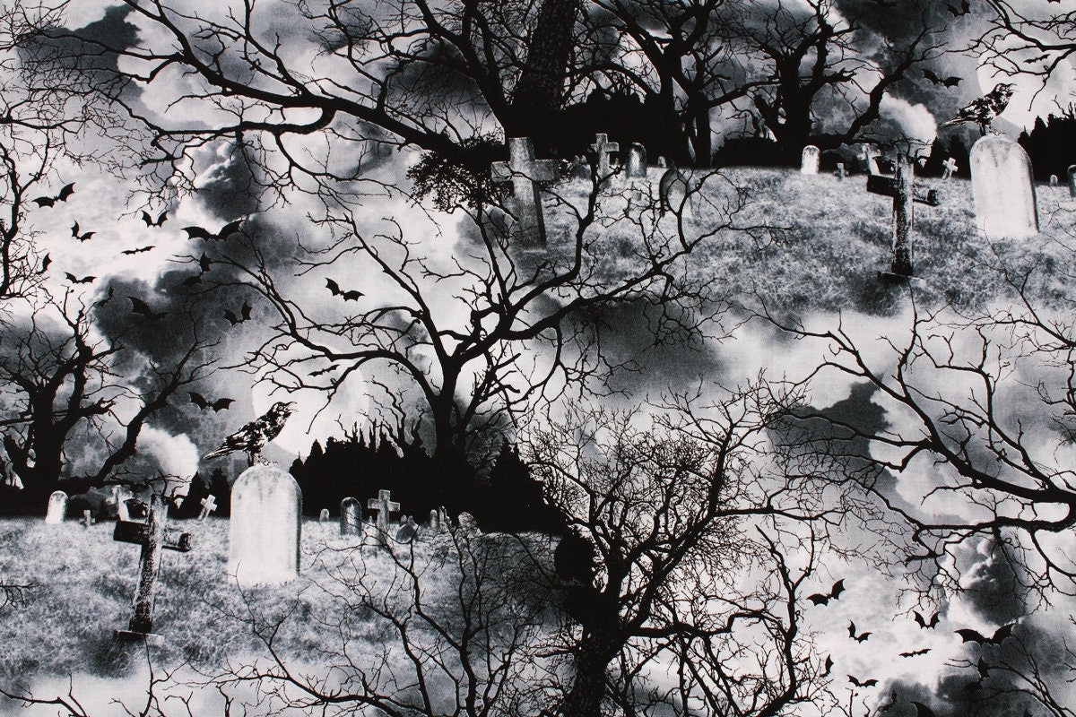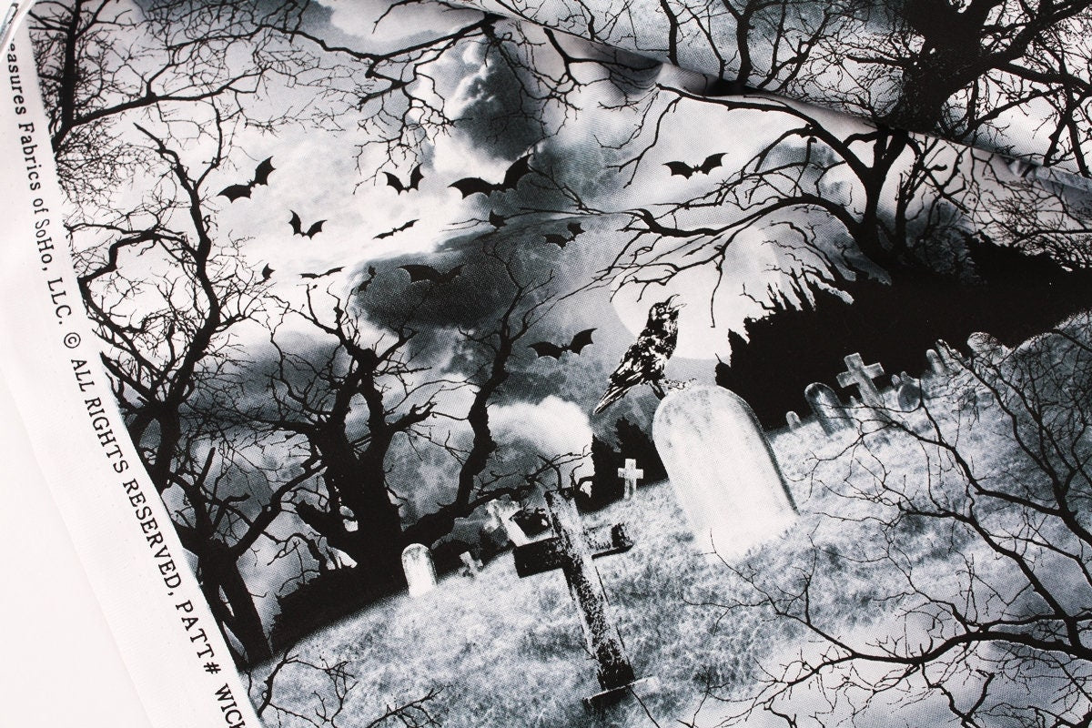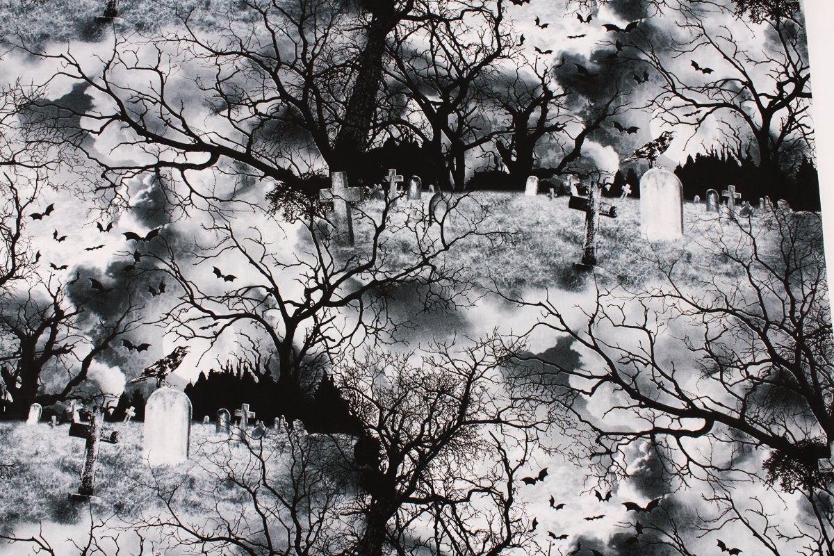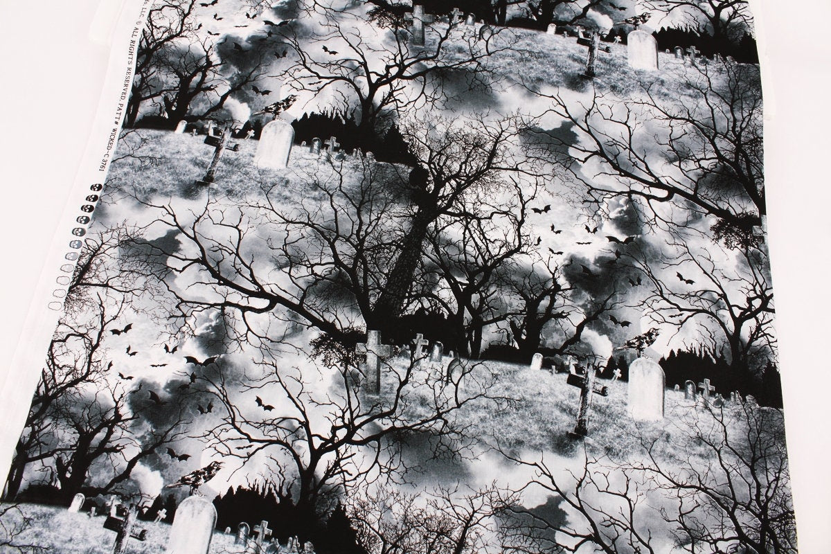 Wicked Cemetery Trees Fabric Spooky, haunted Fabric