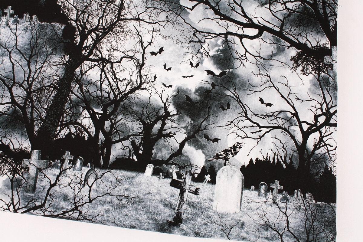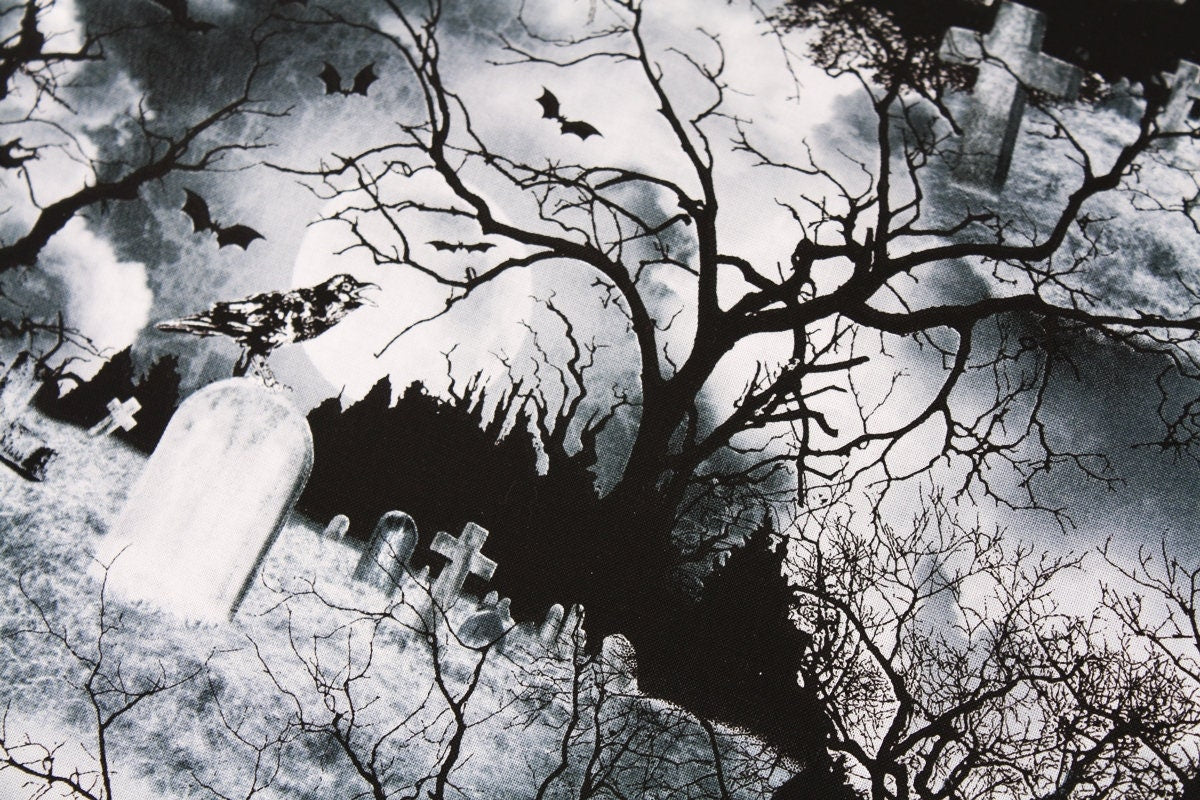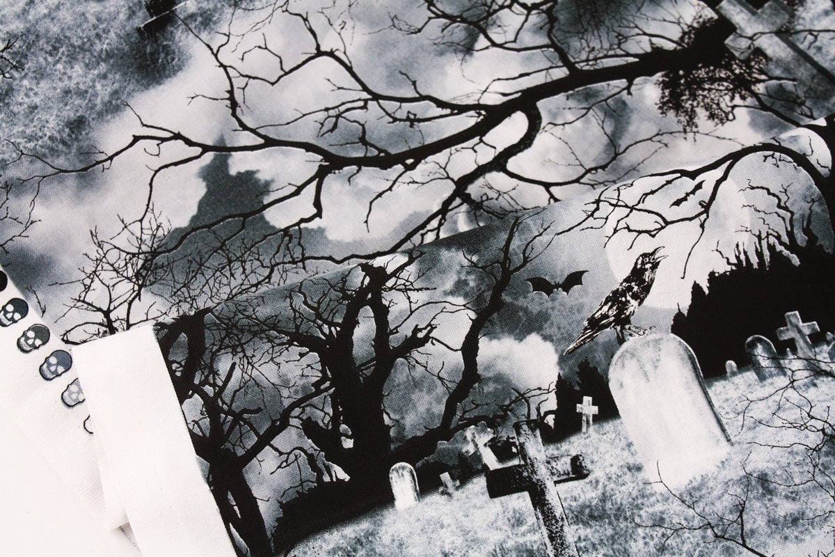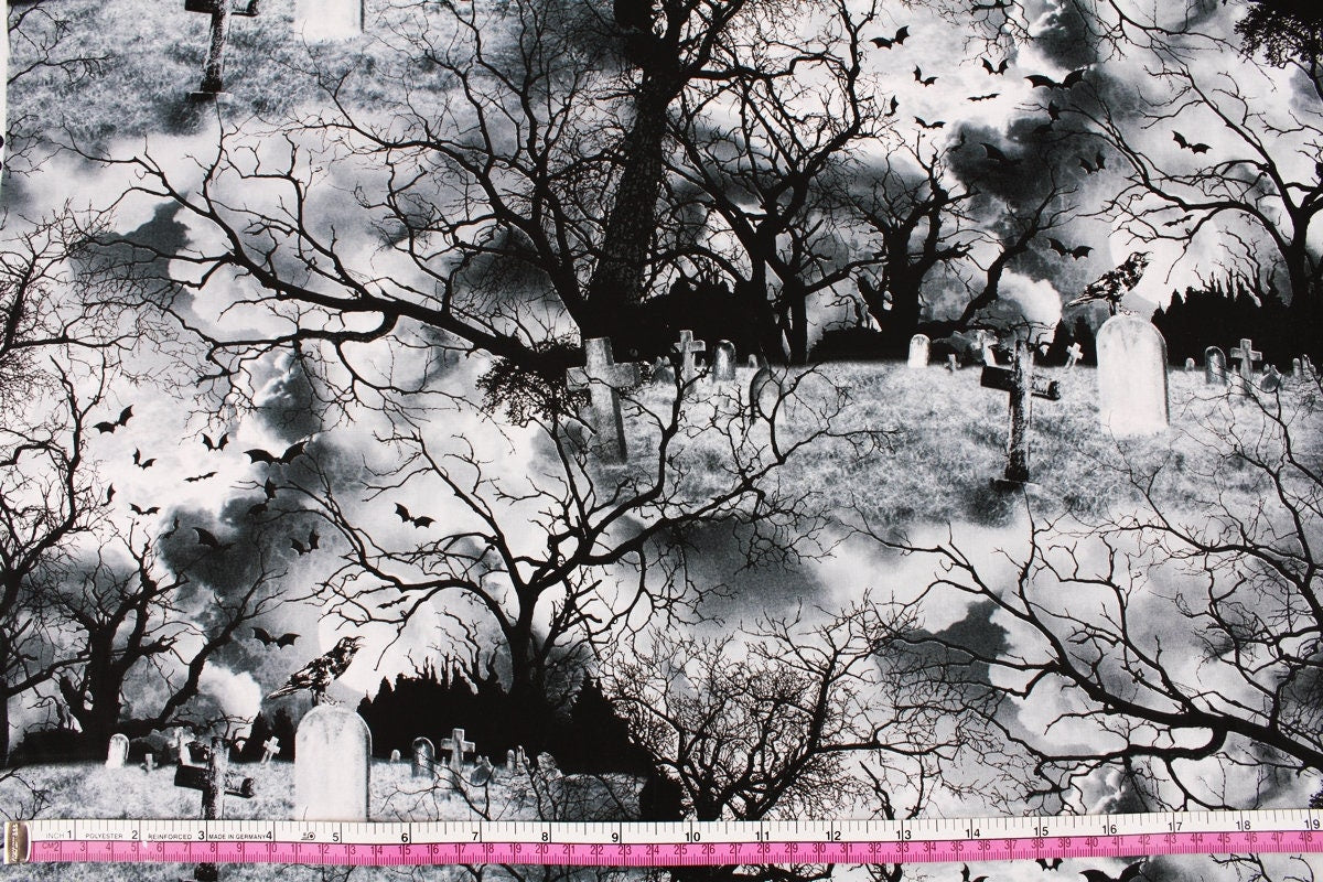 Wicked Cemetery Trees Fabric Spooky, haunted Fabric