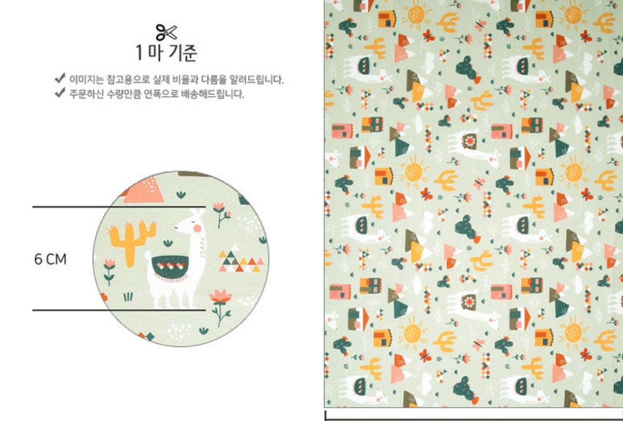 Lama Llama Cactus patterned Fabric, Cute, Kids, Sewing, Quilt- Korean Fabric