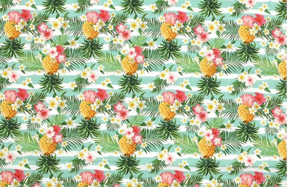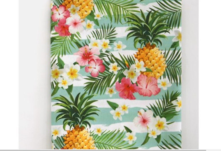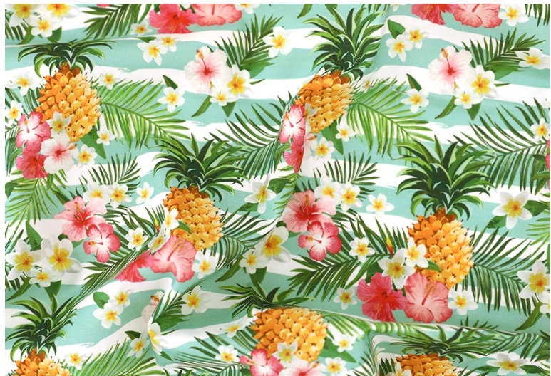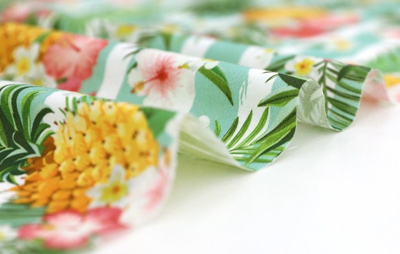 Tropical Fruit Flowers Pineapple Hibiscus Patterned Fabric, Cute, Kids, Sewing, Quilt - Korean Fabric