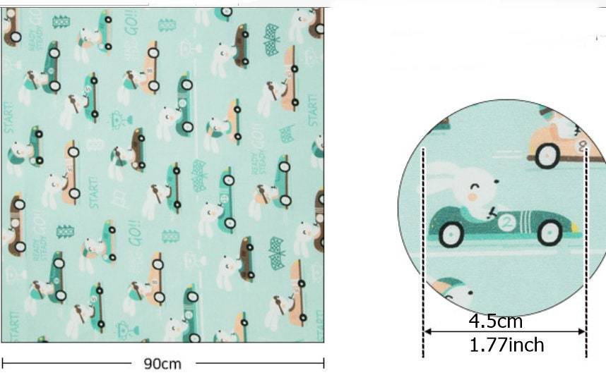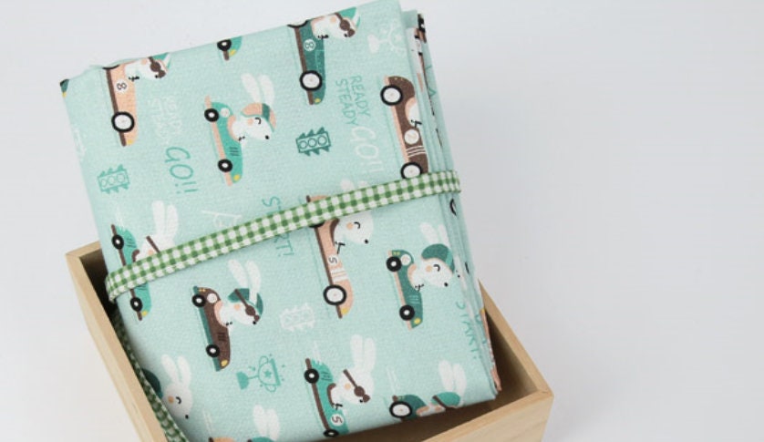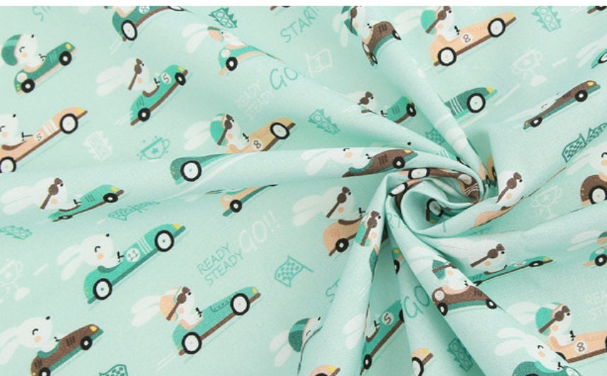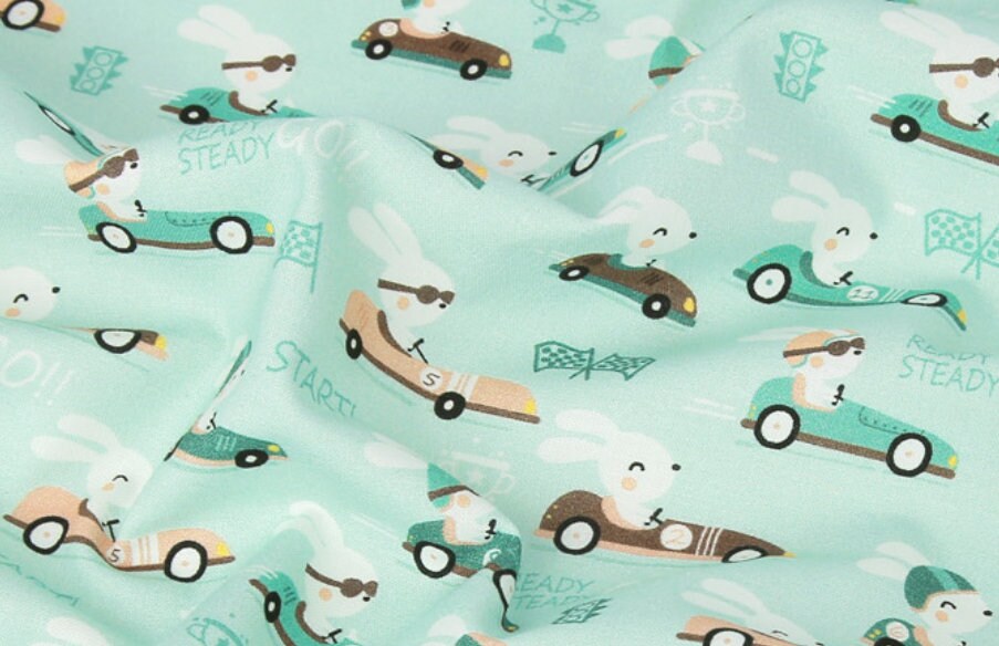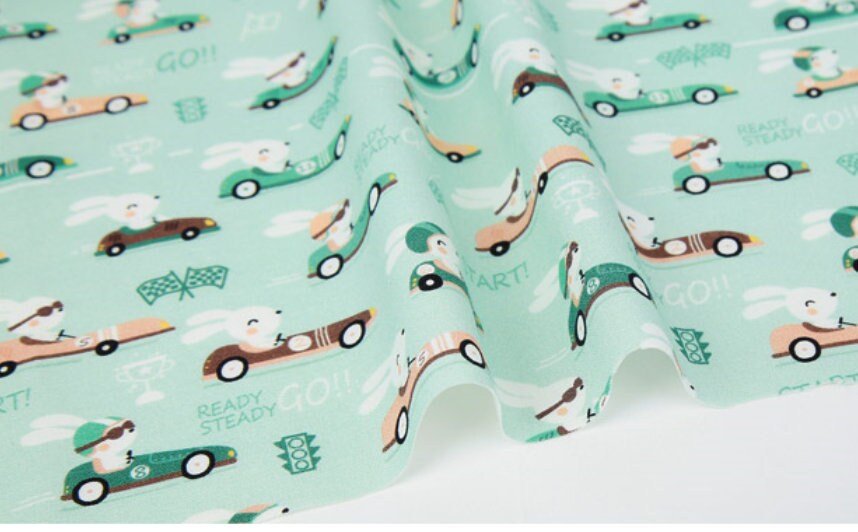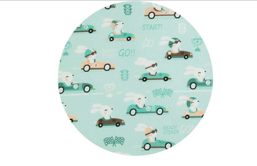 Racing Rabbit Bunny Patterned Fabric - Korean Fabric