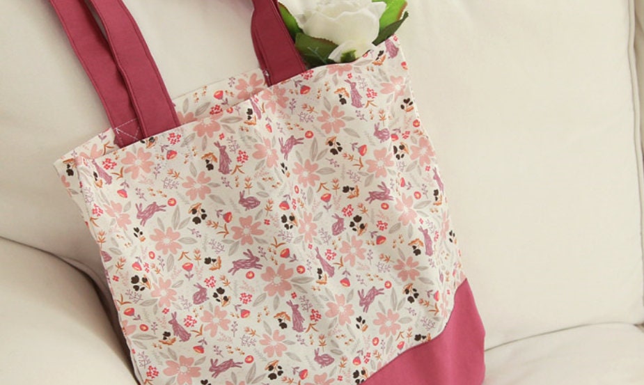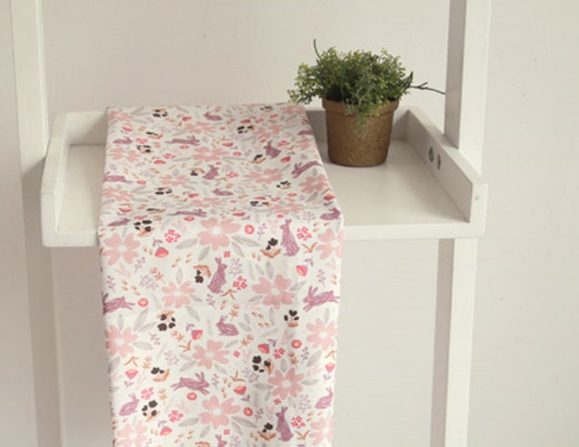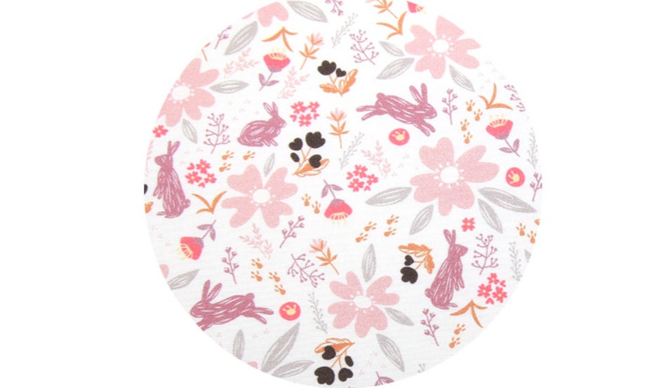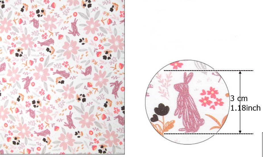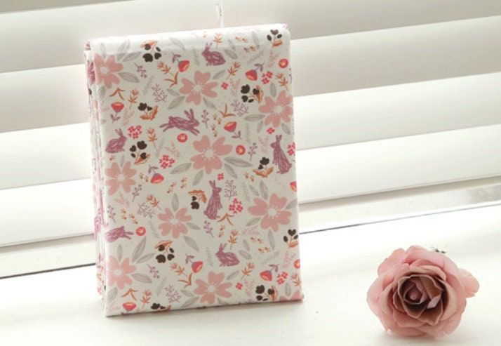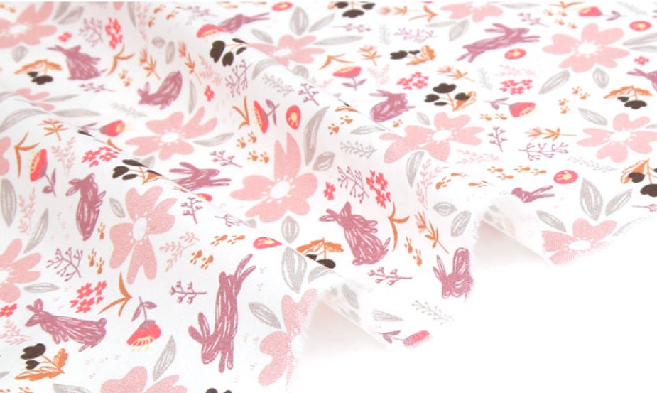 Meadow Flowers Rabbit Bunny Patterned Fabric - Korean Fabric