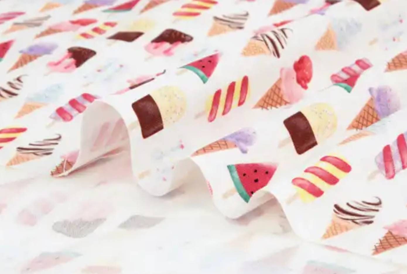 Ice Cream Bar Candy Patterned Fabric, Cute, Kids, Sewing, Quilt - Korean Fabric