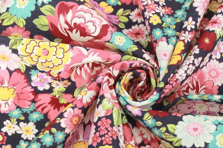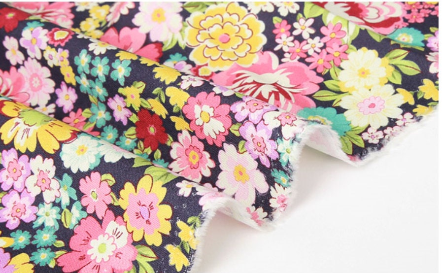 Retro Vintage Floral Flowers Patterned Fabric - Korean Fabric