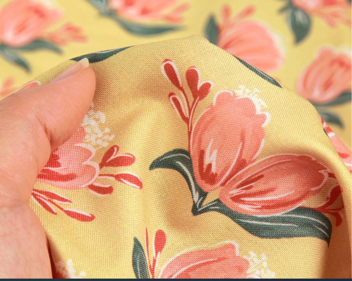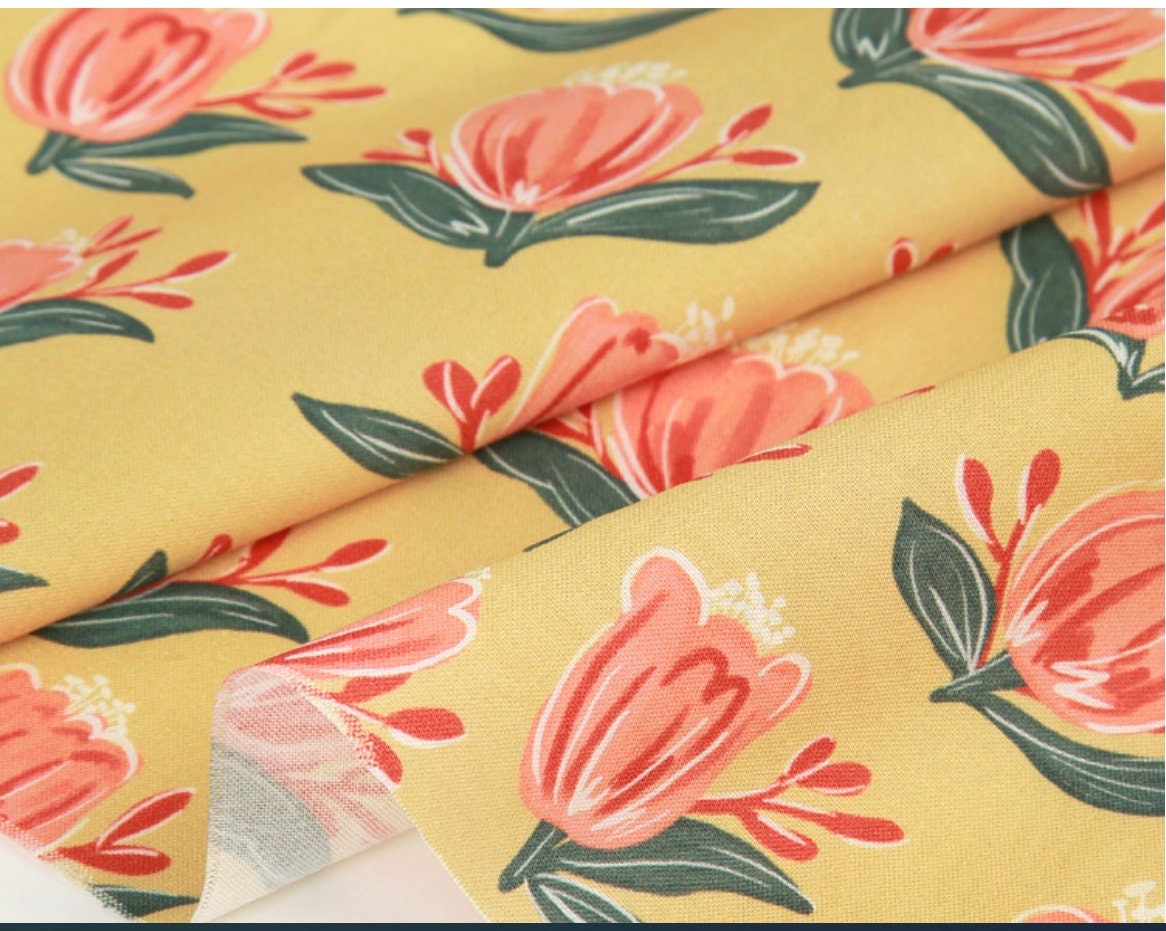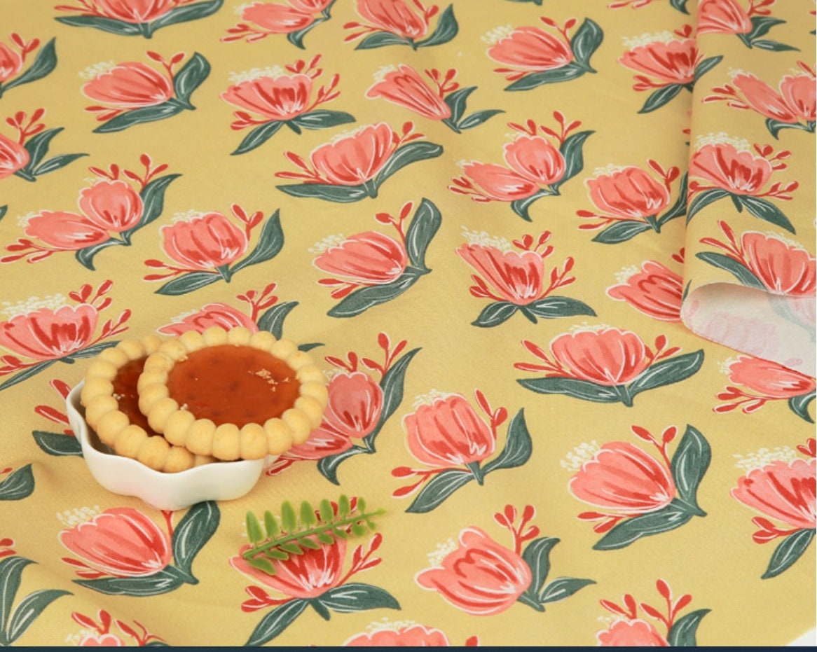 Tropical Flowers Floral Patterned Fabric - Korean Fabric