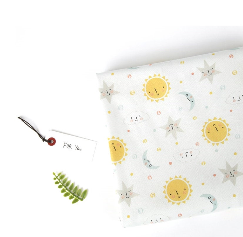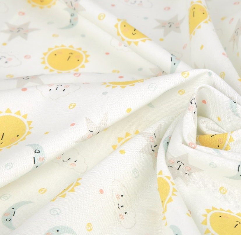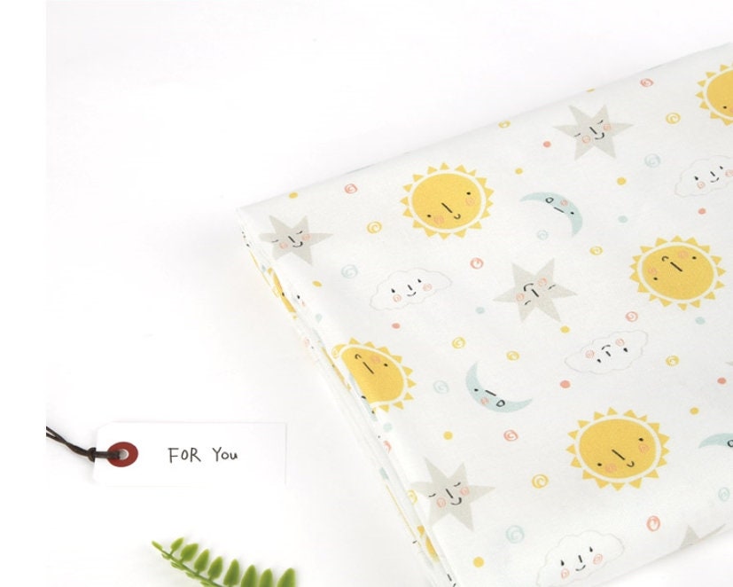 Moon Star Sun Cloud Kids Patterned Fabric, Cute, Kids, Sewing, Quilt - Korean Fabric