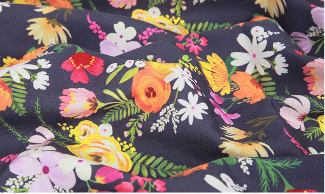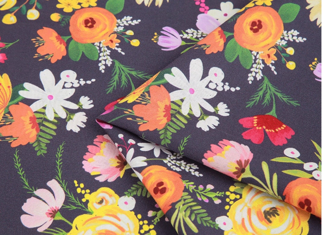 Bouquet Flowers Floral Patterned Fabric - Korean Fabric