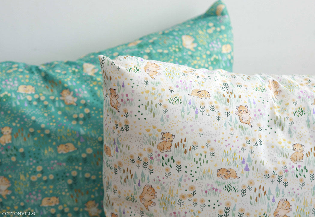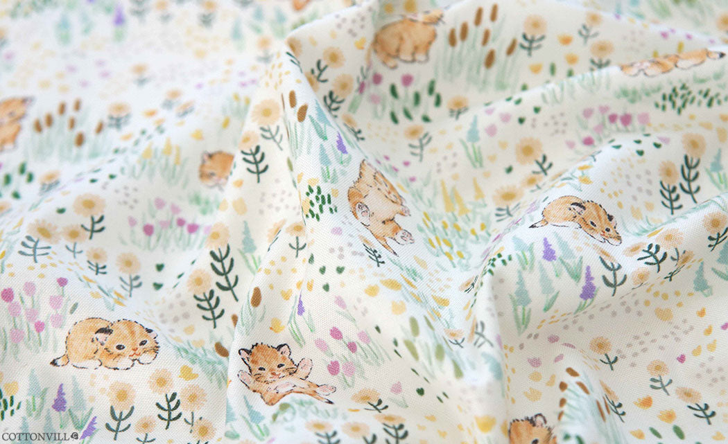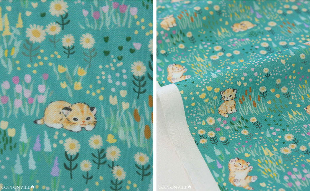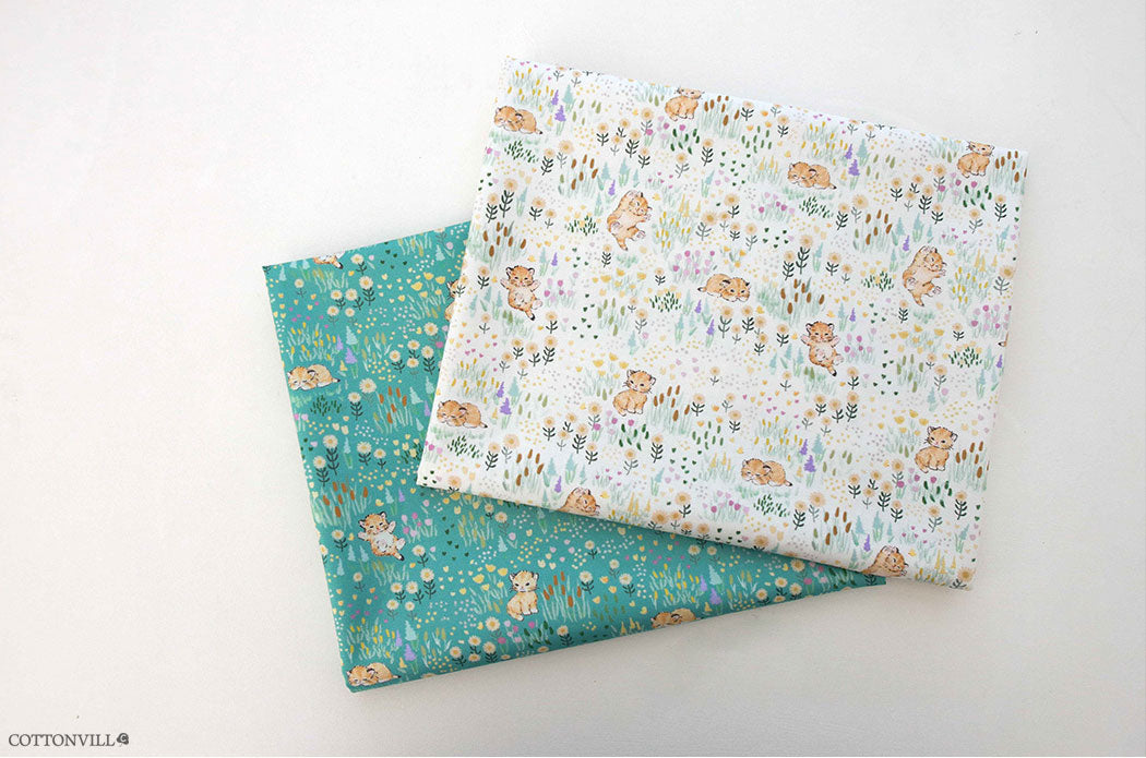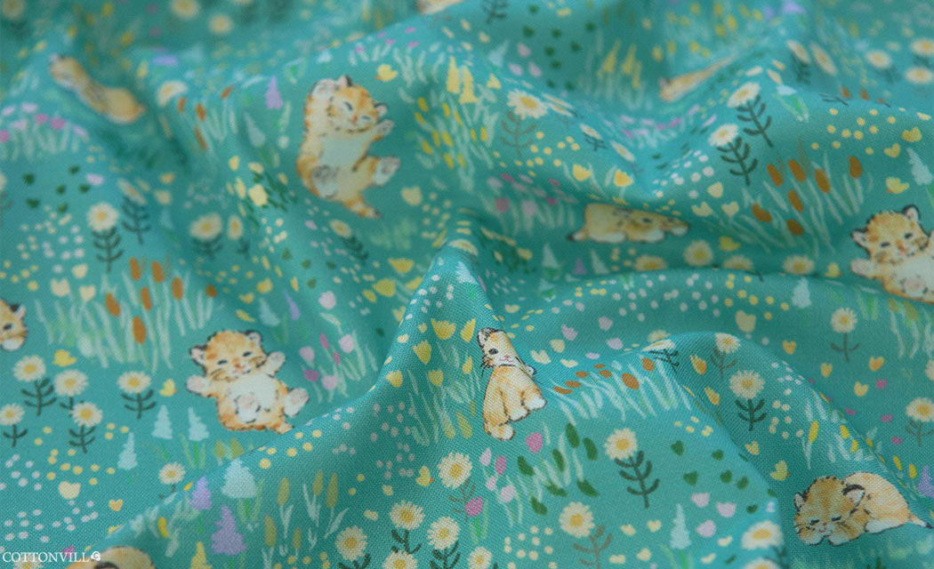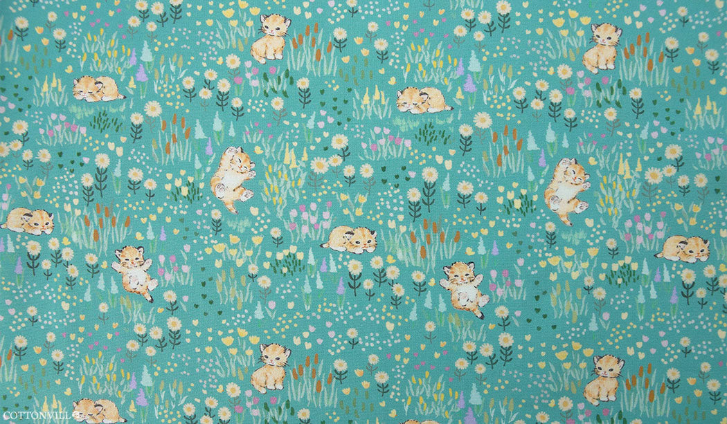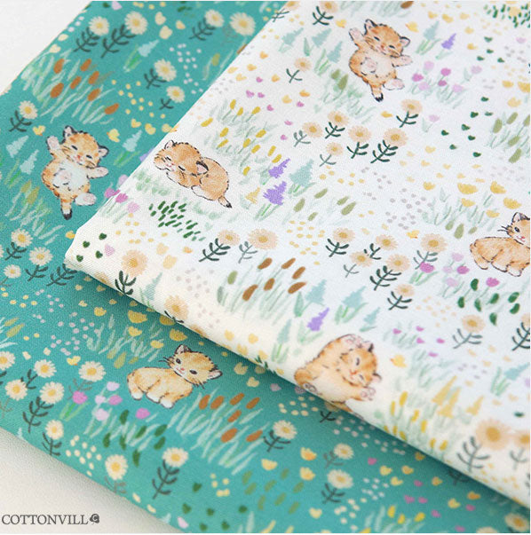 Cute Baby Cat Kitten in Forest Patterned fabric - Korean Fabric