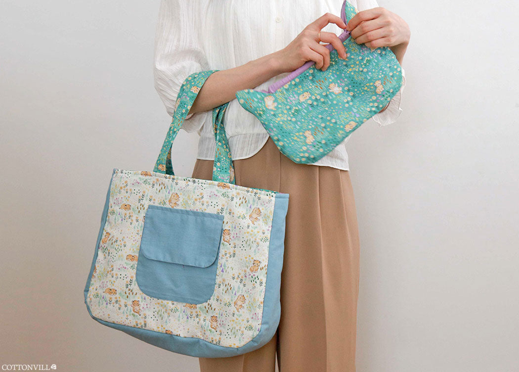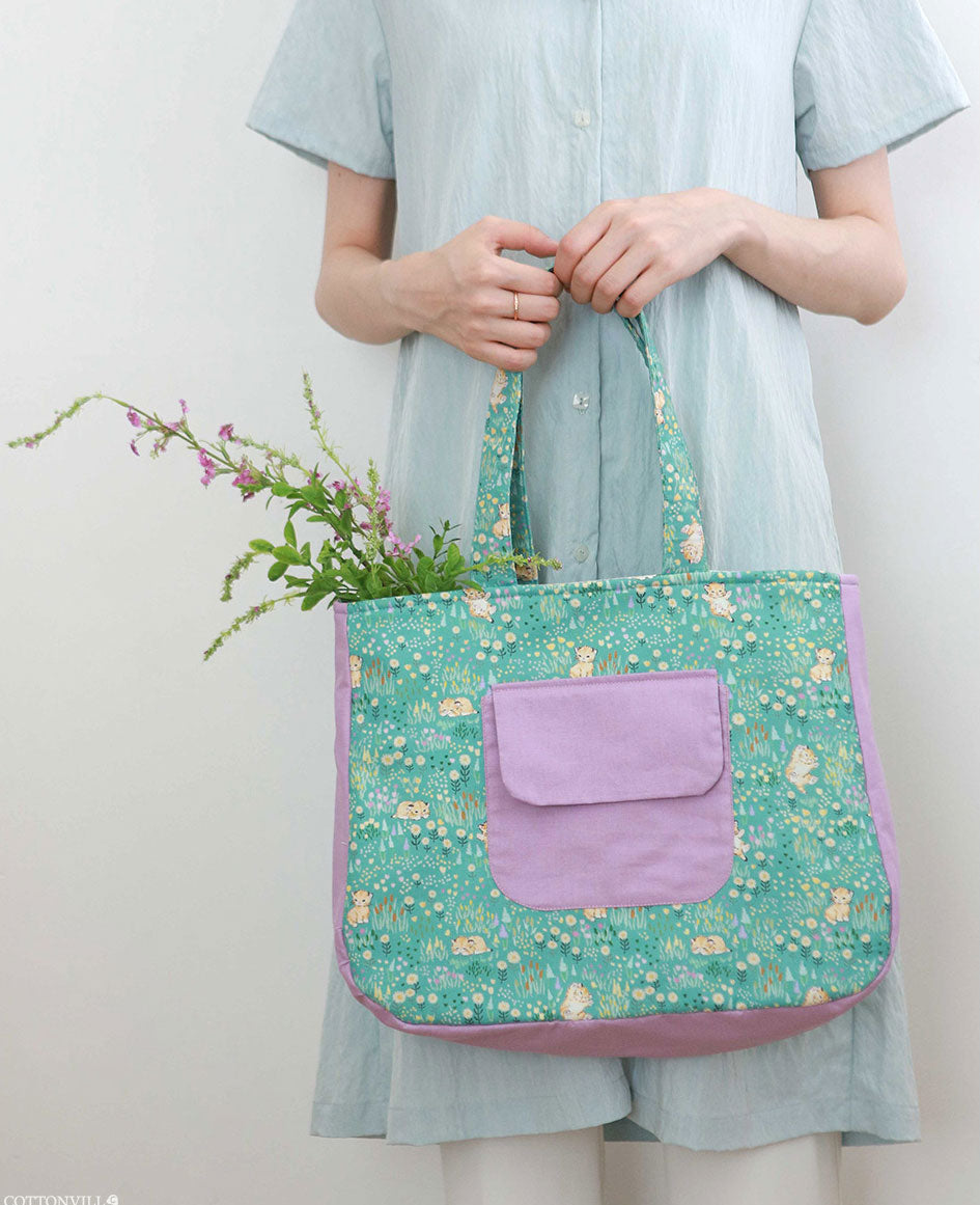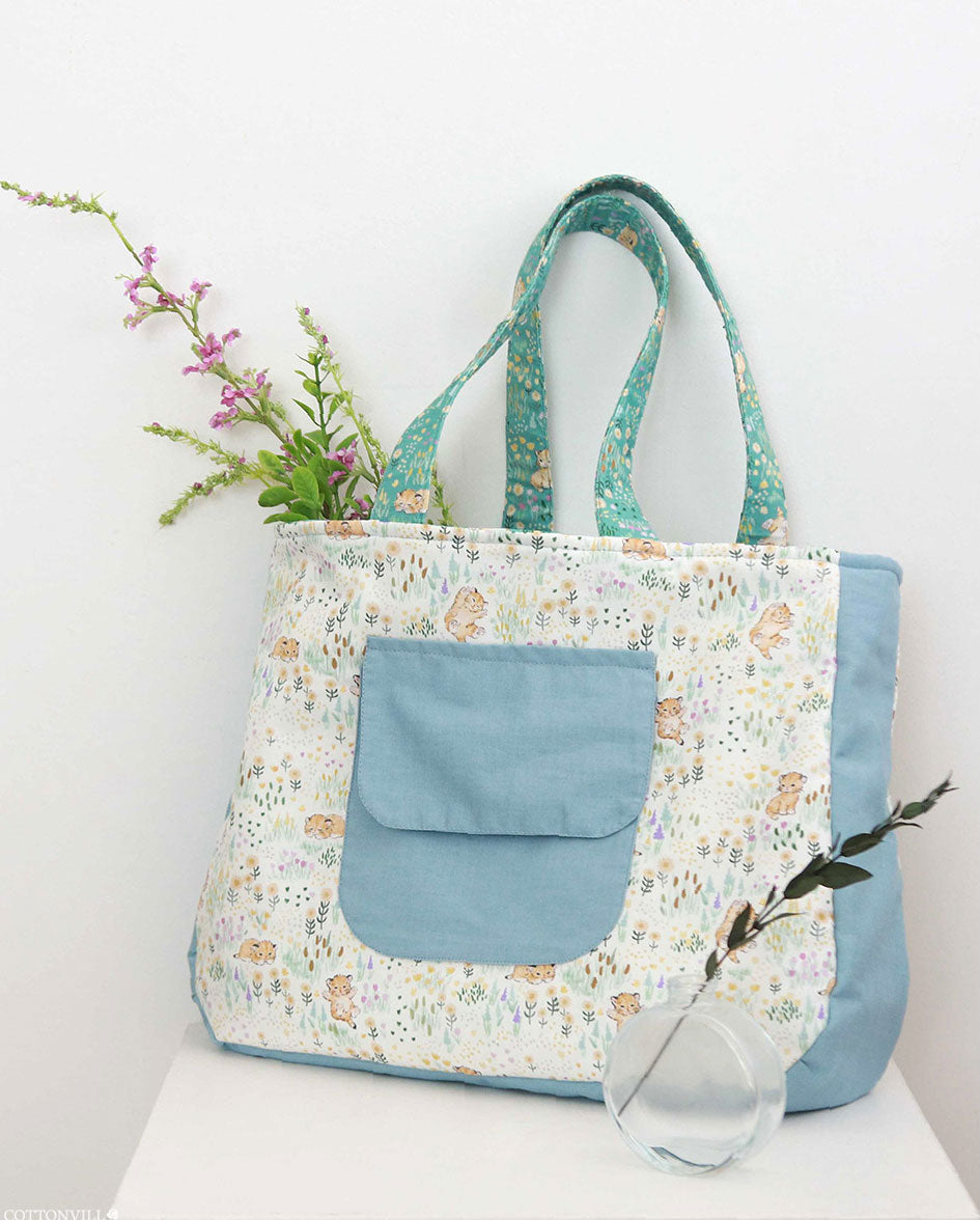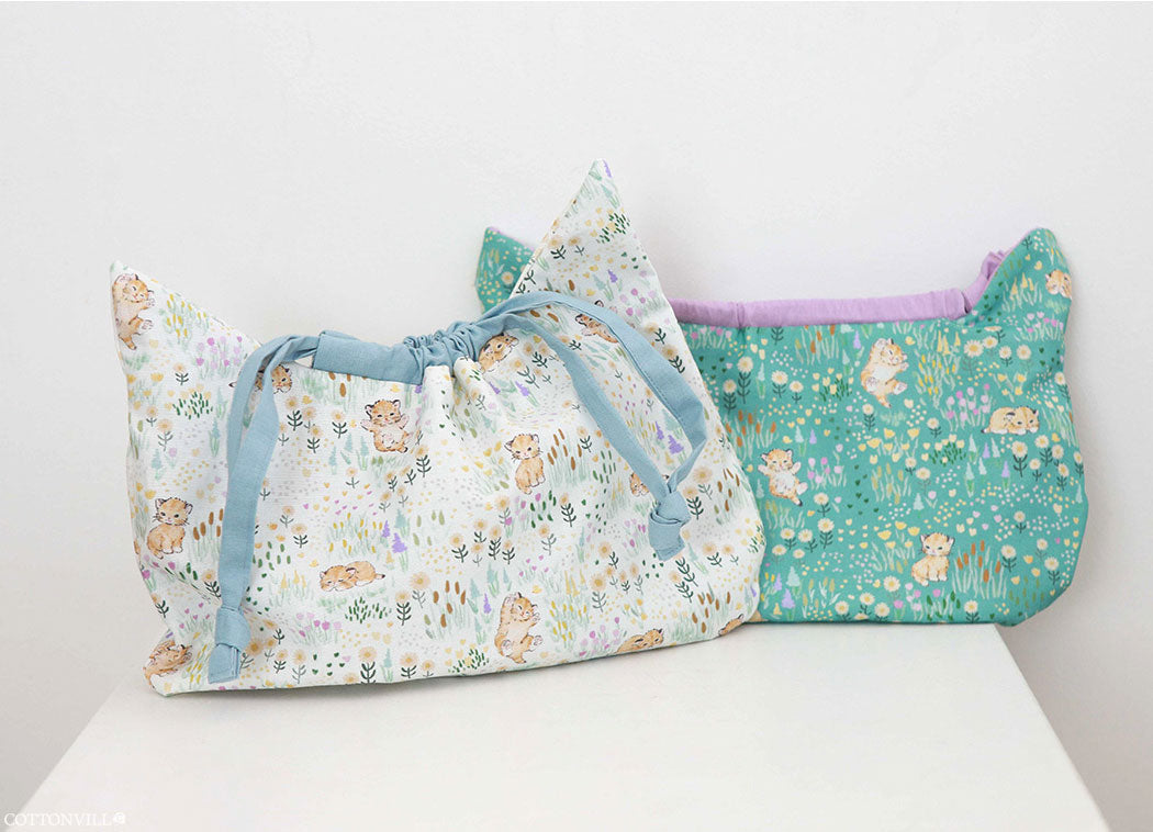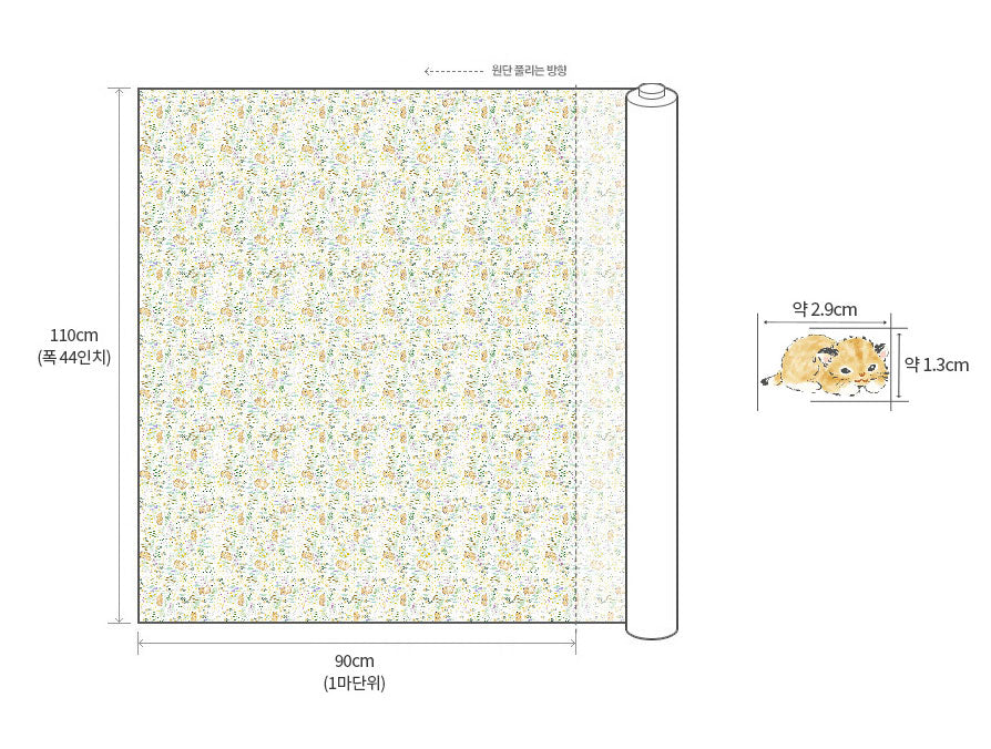 Cute Baby Cat Kitten in Forest Patterned fabric - Korean Fabric