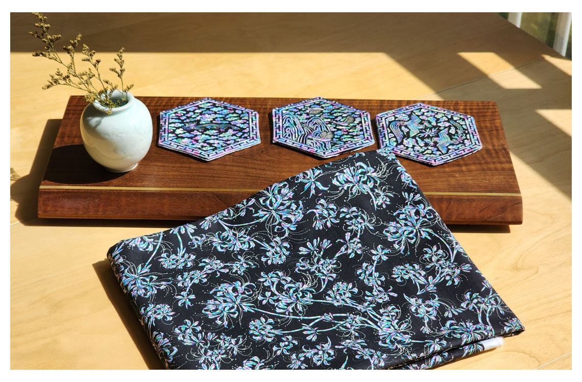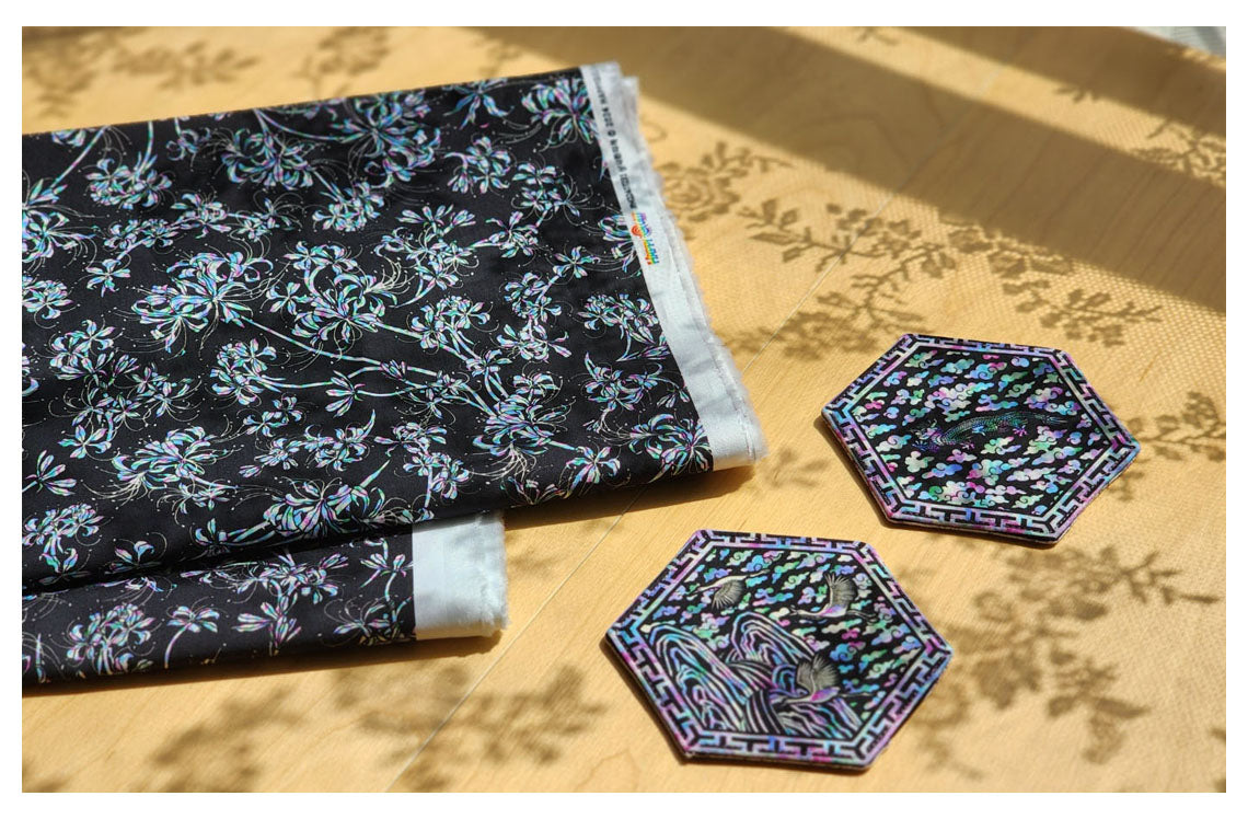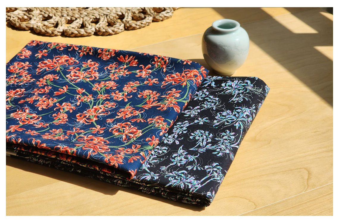 Korean Traditional Jagae Colored Spider Lily Flower Pattern Fabric Korean Fabric