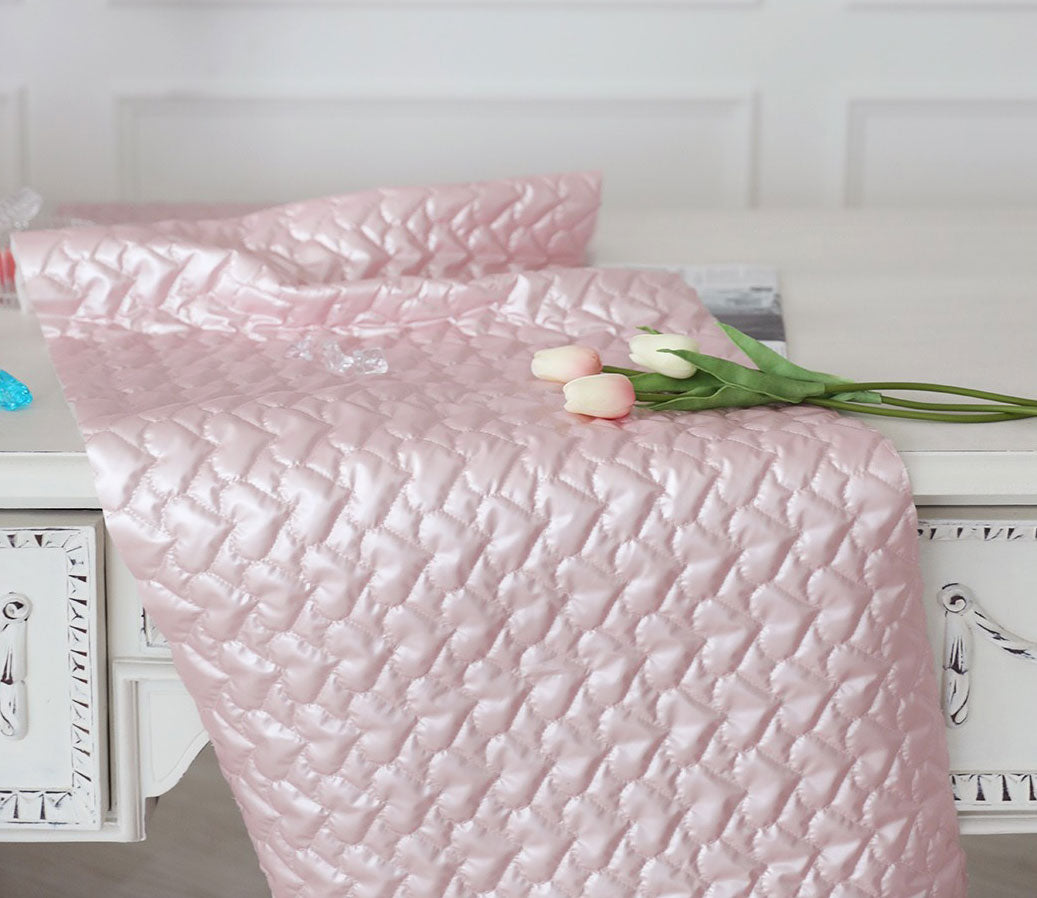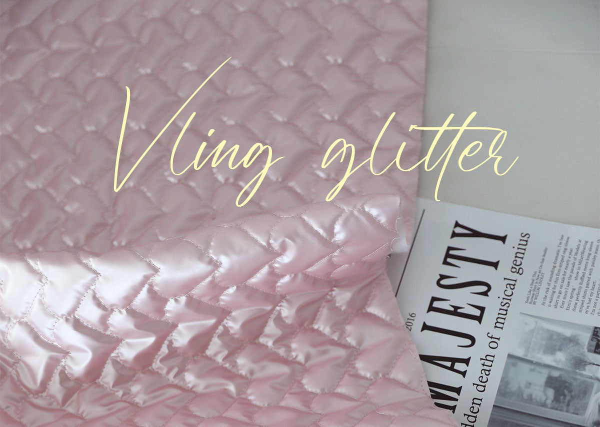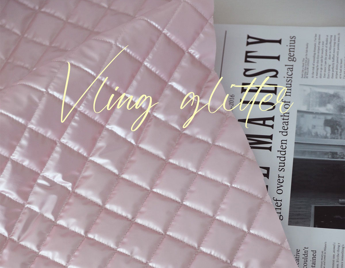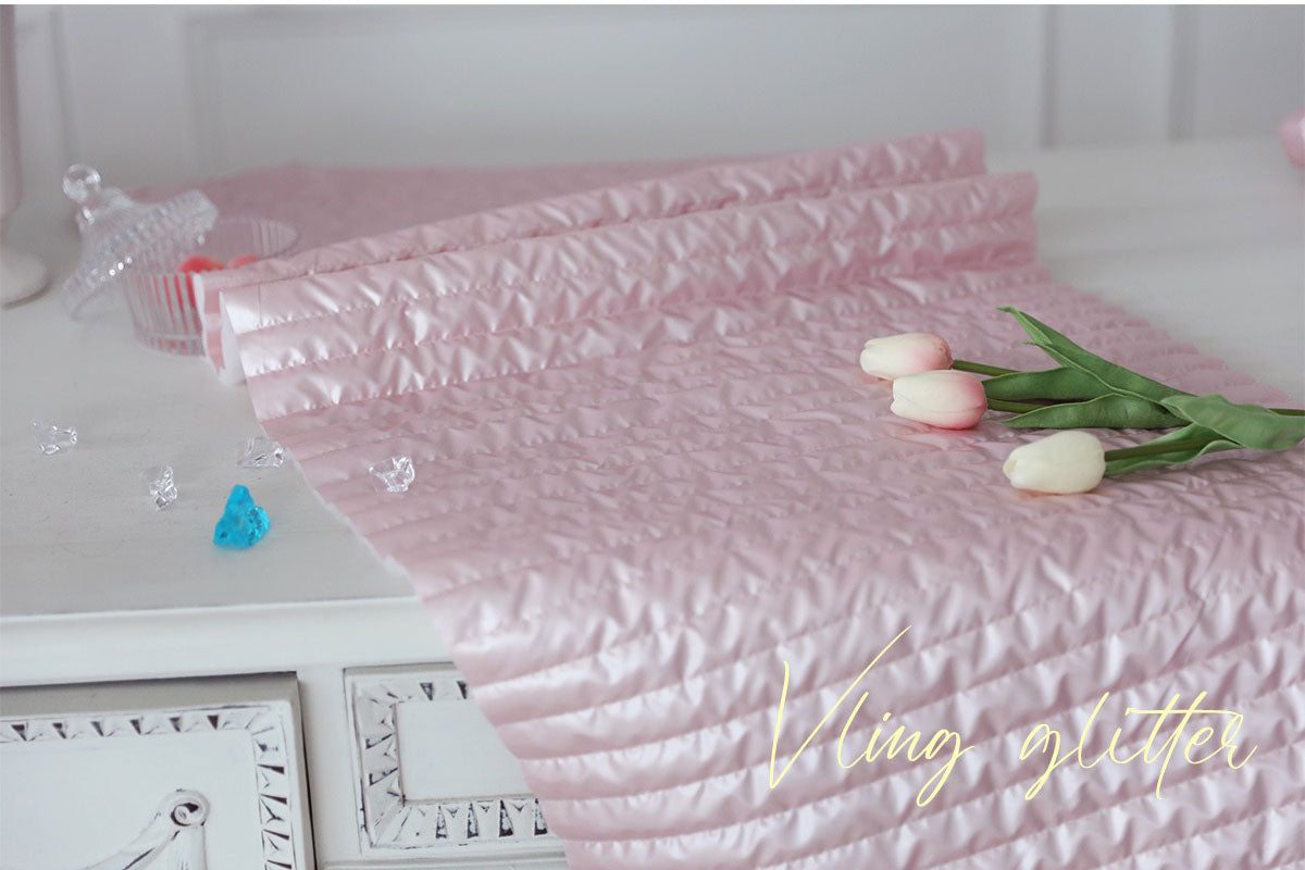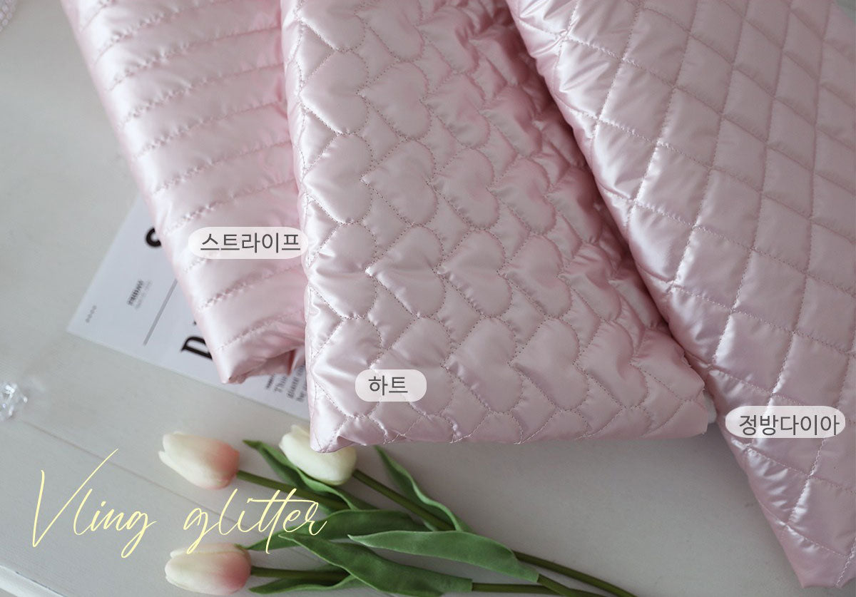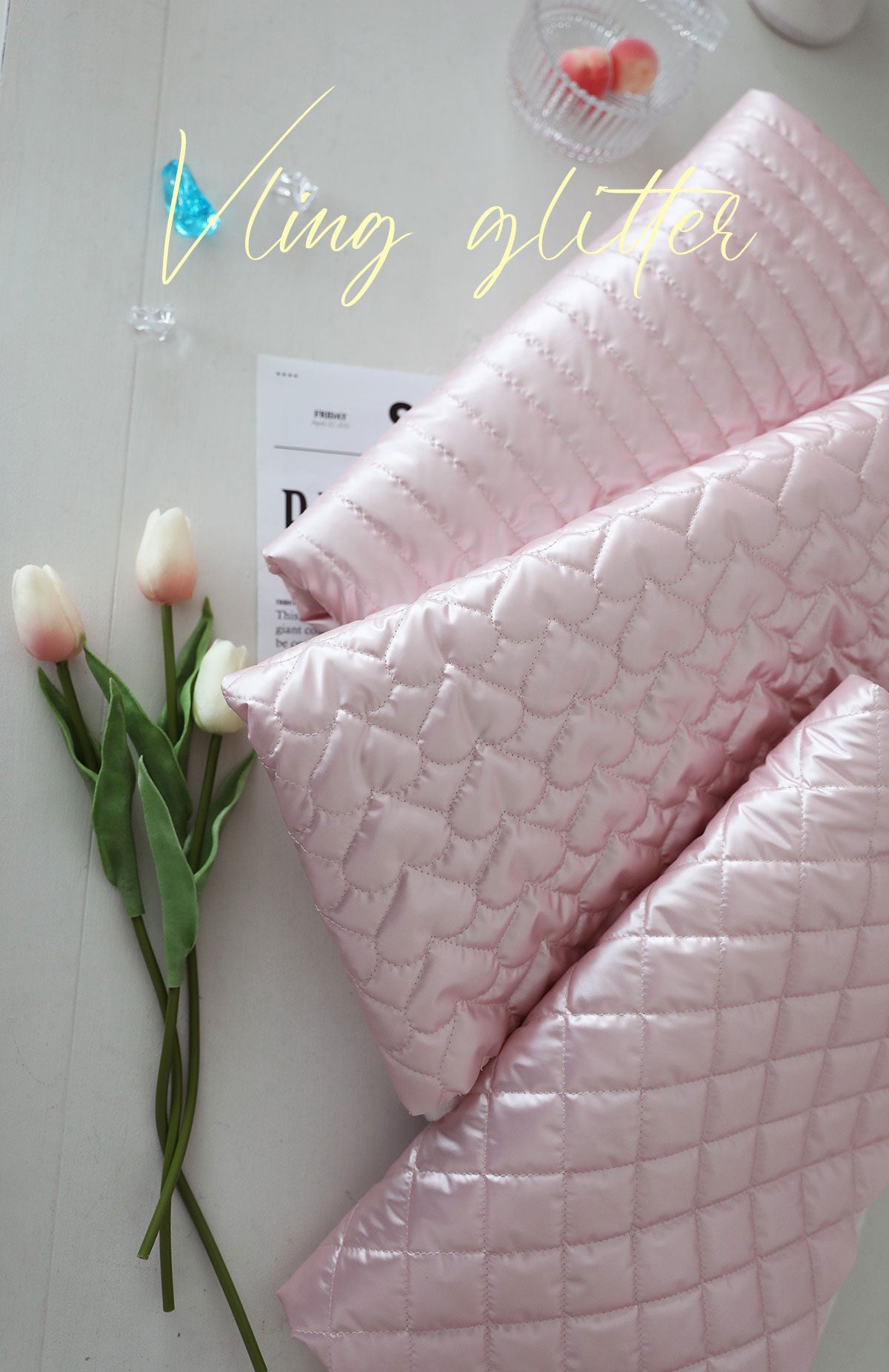 Pink Glitter Stripe Diamond Heart Patterned Polyester Quilted Nubi Fabric - Korean Fabric